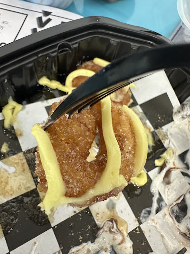 There’s limited seating only 3 tables and a bench but we came at a perfect time of day so it wasn’t busy. I’m ready to go again to keep trying new donut flavors! Excuse our pictures - they looked so good we dug right in and forgot...