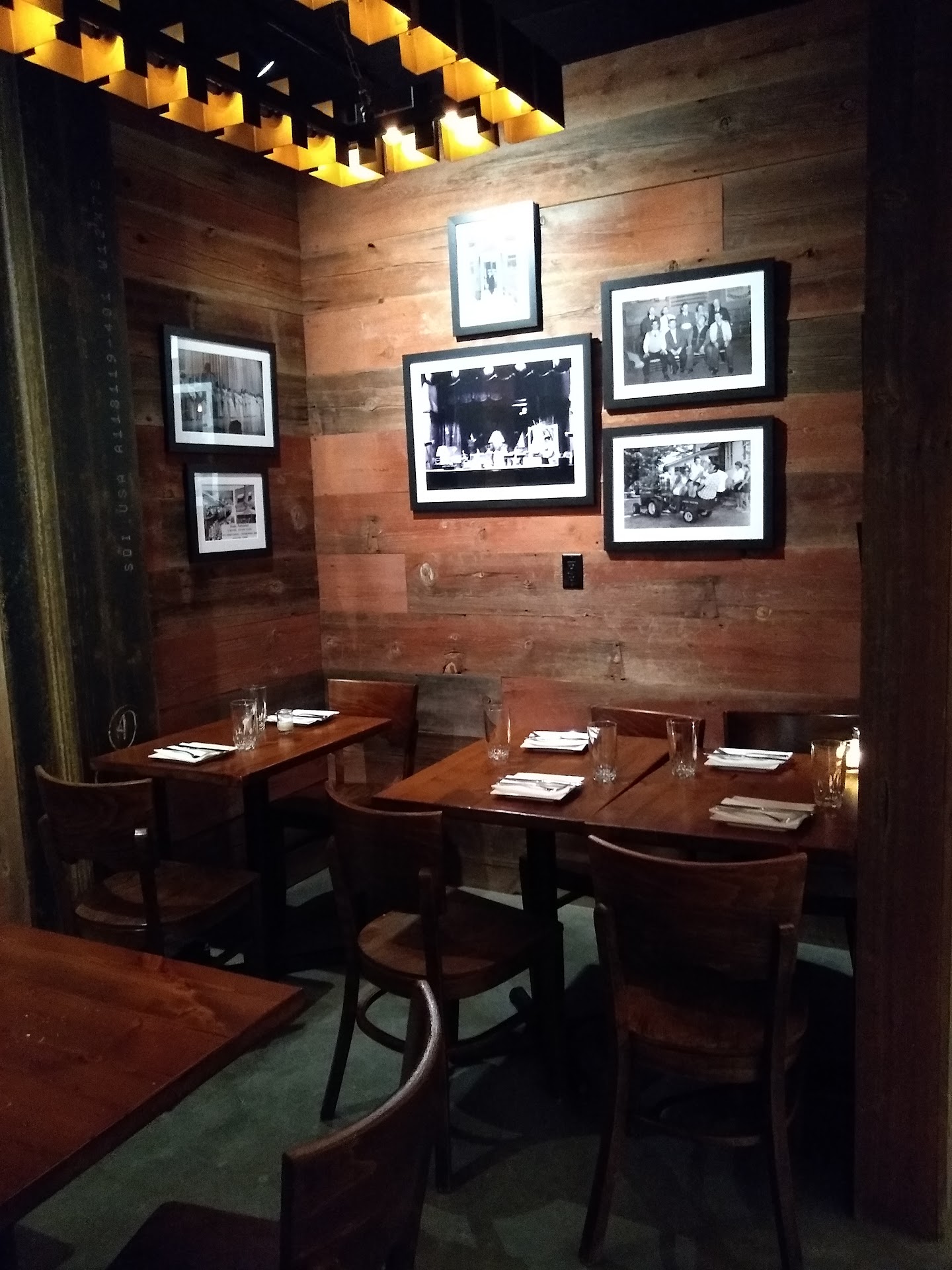 This little place is gorgeous. Great patio right on the bridge with gaslamps lighting the walkway at night. The interior decor in the bar is really unique and upscale for a taco bar. There is a small intimate seating area, or taller tables next to the gigantic glass garage-style doors. Even the hallway to the UNISEX bathrooms is stylish, and bright.
