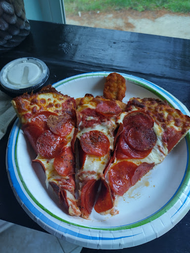 Usually their pizza is made pretty well and the service is pretty friendly! however, I went in yesterday and a heavy set man with dark hair helped me, who seemed perturbed and agitated and was not very friendly at all...he seemed cold and distant and detached...he overcharged me and then denied me condiments saying i had to pay for them when I have never been charged for them before. it took about 25 minutes for the pizza to be made, which is not a big deal, but then after I left when I opened the box it was small and did not look like a large pizza, there was no sauce on the pizza, and there was next to No toppings at all...they were paper thin......it was small enough that I could eat the whole thing myself...and I normally cant do that! ...
