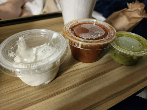 When I walked in somebody greeted me and asked how many and I said I had to go order and she pointed at a table where there was a to-go order sitting. Okay cool I'll walk over and grab it myself and then walk back up to the front to pay the bill. As I went to pay the bill, the 13 something dollar lunch was $17 something and I was told that was because the sour cream I requested was $1.50. okay whatever. The lady cashing me out was super friendly and telling me thank you for my business and all this and she gave me the receipt to sign they have a tip line and I put zero because I'm picking up an order and she made sure to stare the whole time and inspect that I didn't put down a tip and then the fake smile went away and I got the immediate cold shoulder. Always laugh about people who think tips are somehow required for no service. Even though the attitude was subtle it was quite obvious and annoying. I get my lunch back over to the hotel and as you can see in the picture there's about 20 cents worth of sour cream. For a $1.50 that little tiny container should have been filled up!