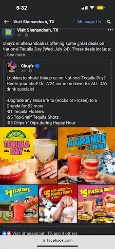Chuy’s Facebook posting for National Tequila Day is was brought us in however when we received our bill we didn’t have the happy hour deals on the ticket. I spoke to the waiter to inquire about the queso and margarita specials to see if this was a mistake on our part or the system to which Jay was unaware so he did ask us to allow him to go ask. Our table was then approached by a manager which I am told his name is Jeanaro which I am sure I am not spelling correctly. While trying to explain what I saw online, versus what was on our tickets he kept immediately wanting to cut me off, and then began getting very upset and trying to be intimidating to which for sure did not go over well for me.