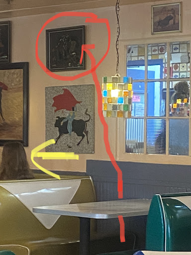 Read moreLet me start with I love Chuy’s not ROACHES ! Being from NM it’s a must for Hatch peppers. I frequent the one in Austin when there and the one closest to me in Pasadena, it’s the best one. I have been to this location several times as well, when attending a concerts at the woodlands. Sad to say I will not return to this one. We were seated at a booth with drinks and chips and dips when a HUGE Roach ( every bit of 3 inches long ) crawled up on our table, wing stretched out like he owned the place, he was a resident, not moving fast at all! Girls will be girls, We freaked , yelled and jumped out the booth. It continued crawling up the wall behind a picture right at our table! Once we found someone to tell them what the commotion was about , a employee climbed in our booth and tried squish him behind the picture. He was unable to. They expected us to remain seated there. We had to let them know we were moving, totally grossed out we moved clear to the other side of the room to a table in the middle , not next to any walls, to wait for our food that we had already ordered . WE had to moved all our drinks and chips and dips , plates ect. to new table, No help from any staff. As we were eating, on ANOTHER wall next to some other customers ANOTHER BIG Roach made its way down the wall from behind another picture, to under that booth. The people at that booth moved too after telling the staff about it. We were never saw a manager, No apology, No nothing. They sat more customers in the corner right under the picture with the HUGE roach behind it! Now on edge, not really wanting to eat the rest of our meals, we asked for the check, thinking we would see a manager now…. NOPE! Looking around at place the floors were dirty , under the booths did not look like they had been mopped in a long time. Walls along booth tables were dirty as well. I’m sure there was lots more roaches behind more pictures, in and under booths and tables. We paid our whole bill and left, never to return to this location. (Picture included of booth we were at, red line is where the roach traveled to the picture and yellow arrow, the new customers sitting under...