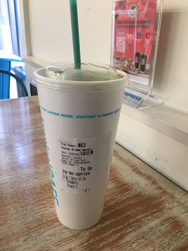 Read moreAfter standing alone in the lobby for a while I was asked if I wanted to order I said yes in that instant the cashier who inquired decided to walk off to the back and I stood there again until someone decided to attend to me...i placed my order there after multiple order came in from walk-in and online orders which were all attended to before me...the attendant who walked away from me a first decides to finally come back and try to take me order that I had just placed. When I made it clear my order was placed she took the time to place my order at the back of the current orders....as I'm once again standing alone in the lobby finally my order is made and the attendant hands it to me as says "sorry for the long wait" in the most sarcastic voice you can imagine then the full staff in unison laughed as loud as they could... unfortunately I needed the smoothie for my baby or I would have asked my money back and it reminded me of why I don't like to tip for service before service is rendered as is did today...I wouldn't recommend this place if you want proper service and your are of brown skin because they will make you wait until all the pale skinned individuals are...