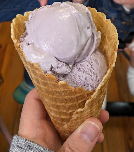 Read moreWow, this ice cream was delicious! I love unique flavors, so I tried the lavender honey flavor, made with local honey. It was purple, which was fun! The lavender taste wasn't strong, but I could definitely taste the honey. It was perfectly creamy - a wonderful treat! The interior is small with just one little table and two chairs. It was a little chilly the day we came, so we ate inside. We had our 11 month old with us. She was content to sit in her umbrella stroller and look around while mom and dad ate their ice cream. The interior is cute, and the staff member that we interacted with was...