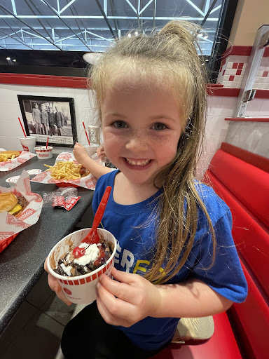 Only giving 2 stars because they actually did a good job this trip on 1 of our sundaes. Our first trip there last week, we ordered 3 Sundaes - ordering was a process as we had to repeat every sundae, we get it, new workers, new menu to learn. After waiting our turn (30 minutes) we got to the window and we're handed a brown bag with our sundaes inside. Off we go, when we got home (1/2 mile away) we opened our treats and were less than impressed. Turtle delight - regular size. Maybe a tablespoon of caramel and about the same amount of chocolate. Not even visible from the top if the sundae. Brownie delight - regular size, tiny, amount of chocolate and an Itty bitty brownie piece at the bottom. Caramel/cashew sundae - regular - 6 or 7 cashew pieces and maybe a tablespoon of caramel. Ok, new store - learning experience. Tonight we decided to give them a second chance - hubby and kiddo wanted a sundae - drive thru, a little quicker this time and the ordering was easy and no issues. Only ordered 2 sundaes this time. Turtle delight - regular size and a brownie delight. The brownie delight came out first, had a brownie this time, but a small amount of custard. Turtle delight followed 3 minutes later and it actually looked like a true Freddy's sundae you would expect. Decision made tonight, that we will drive 25 minutes to a different Freddy's as it has been pretty disappointing at the Shepherdsville location thus far. I have photos, but it is not letting...