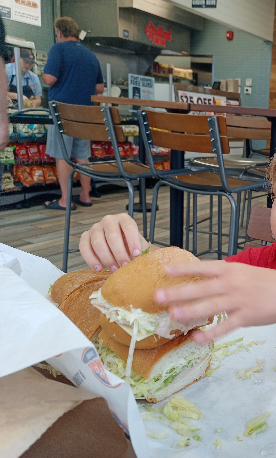 Read moreI don't usually eat here much because the prices are a little insane. But on 3 separate occasions over the past year I've placed an order through the app and arrived at the store usually 20 min after placing it, to give them time to make it. Every time I've walked in the store it has been empty with no other orders or customers. The employees tell me they will "start making it" after I arrive and continue to take breaks in the middle of making my order to talk about "video games" and other things. And if a person walks in they tell me "I have to help them first" and then they finish their whole order while my order sits half unfinished. By that time someone else has walked in and its a repeat cycle. Including the arrival time on the app I have waited 50 min to over an hour every time I've come here for just one single sub. Just one. If they're young employees and want to talk about videos games thats cool. But they need to learn better customer service and how to work while they talk. Really dont want to stand in the store and hear you talk about fictional characters for half an hour. Other than that the food is...