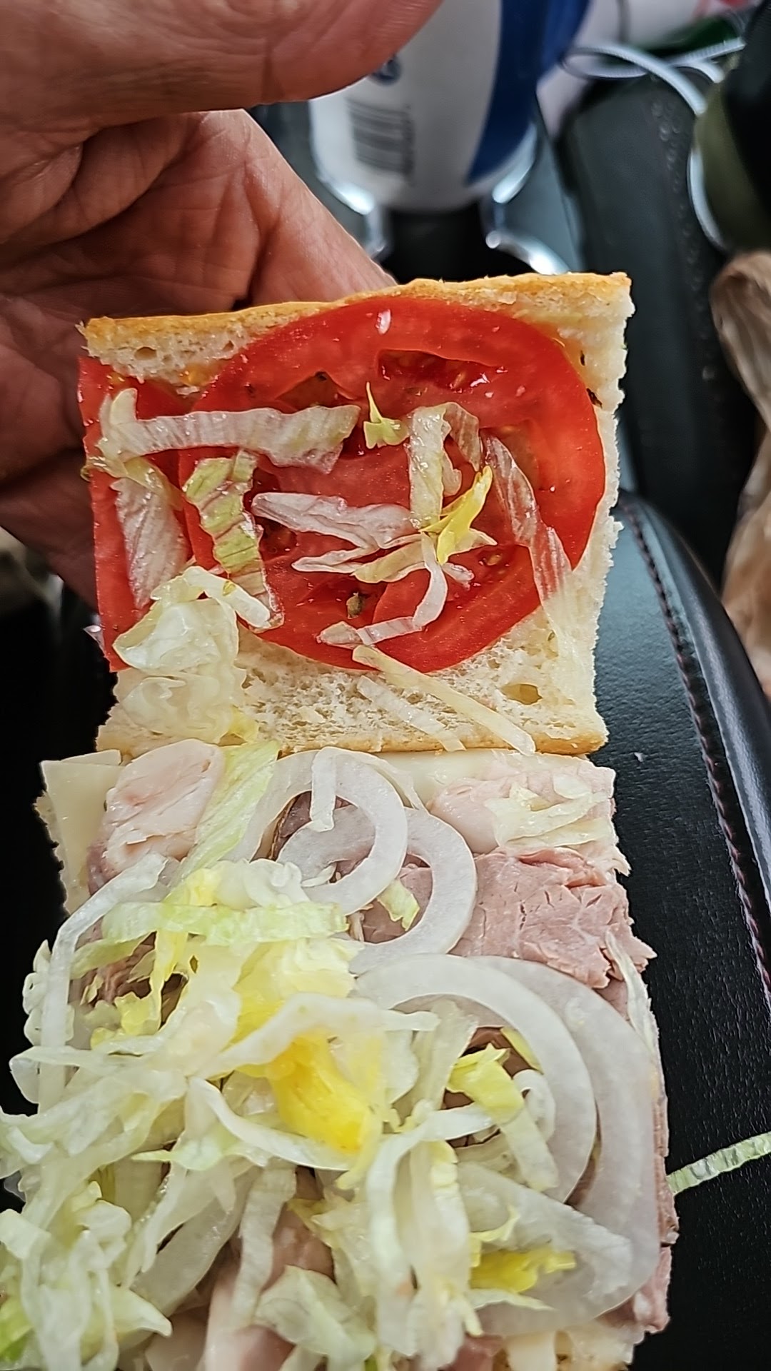 THEN I was informed that their sandwiches come as described on the board. The customer doesnt have the option of picking n choosing the ingredients for their sandwich. So, my husband HAD to have provolone cheese. I told them black olives. GUESS WHAT! THEY DONT HAVE OLIVES- black OR green for sandwiches ! They DO have banana peppers & pickles. BUT NO GREEN PEPPERS, or cucumbers.