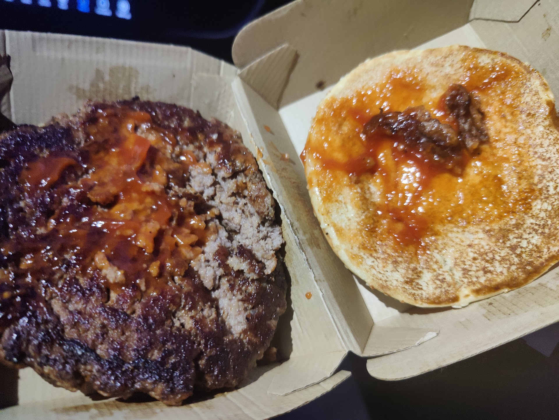 We brought it back, they took it and I requested a new one — what we were given was something which had been thrown together in haste, as though the individual ripped off the toppings angrily and then re-heated the same patty. It was sloppy, with ketchup everywhere, still some of what we asked not to be on the burger remaining, and it looked as though it had been played with. In the photo is what was given to me.