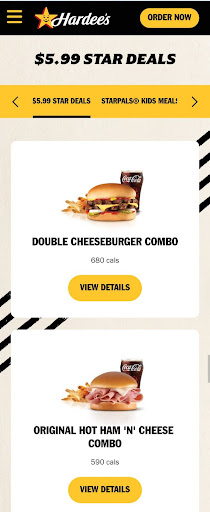 Read moreJust went thru drive thru, asked for 5.99 hot ham and cheese Star combo. Was told they no longer had it. I looked it up online at that moment and, as can be seen in the photo, the 5.99 star deal is online on the hardees menu listed for their stores. I typed in my zip code and the menu stayed the same, offering the 5.99 combo I'd asked for on the menu. At the window I asked the guy if he was sure they didn't offer it, and showed him the combo on the website for 5.99. He said his GM just told him they didn't offer it and had changed it for something else. I asked if it was just sheridans store that wasnt offering the meal and honorinf the menu, and was told, I dont know. I then asked him what they changed it for, and he said he couldn't recall, but it was a couple days ago.