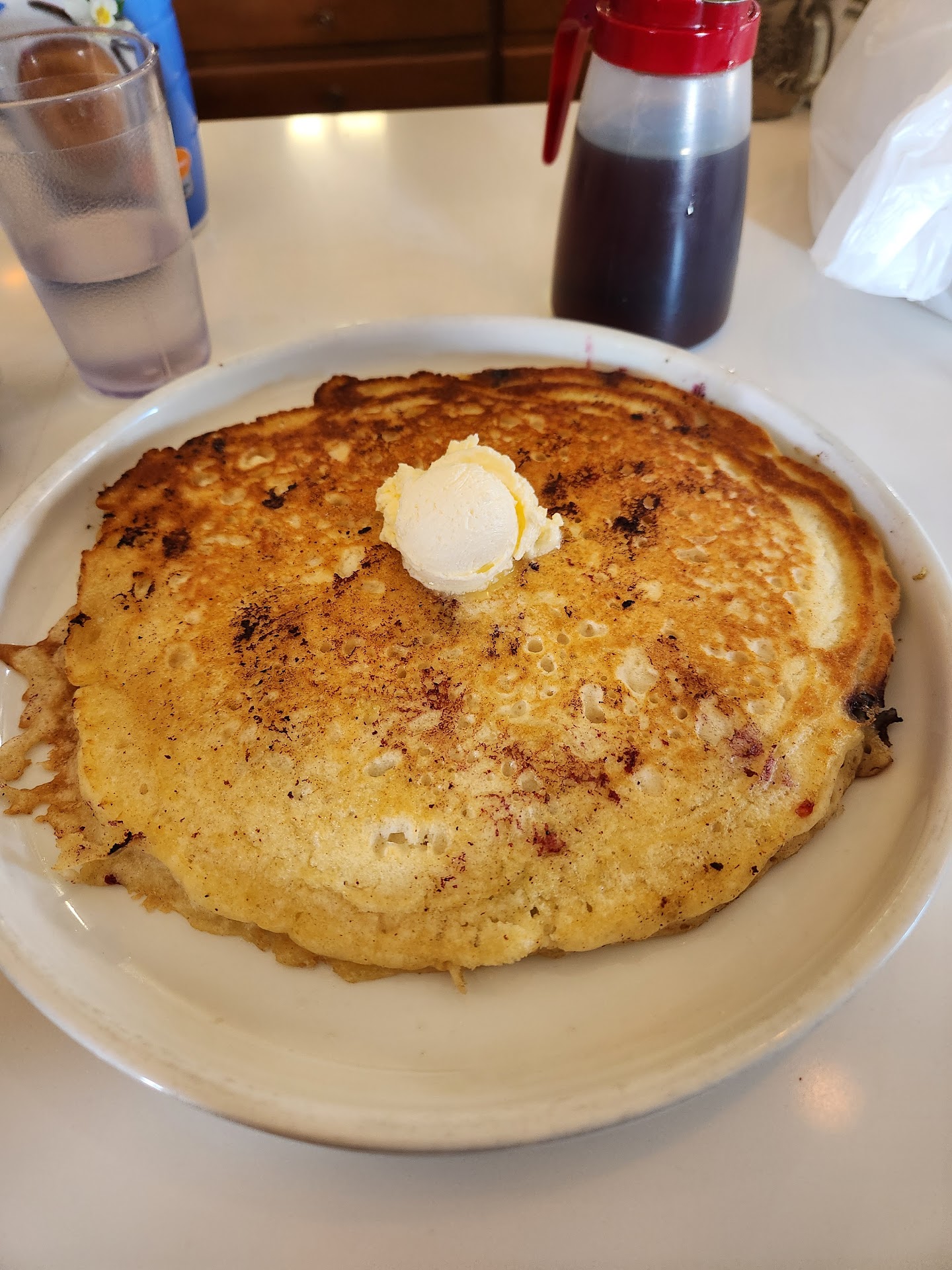 Read moreBad in all regards. 6% fee for credit card...and they don't tell you. Super slow service, one thing at a time...sit you but no drink order...much later a drink order but no food order...much later food order...much later food but you can't give a credit card...much much much later a bill but they will be back later for your card...a bit later they take the card...a bit later they bring one copy to sign and no copy for you. It was painful. And the food disappointed too. The Spanish omelette w "seasoned beef" is a taco omelette. Taco meet. Ground beef. Why call it Spanish? It was literally swimming in grease. I can't believe this place is popular cuz a few people around me were also complaining about slow service, no coffee refills, etc. Also v cramped at the counter, but I can forgive them for this. It's a counter service. But then the worst was the waitress hovering over me when I was signing the check, watching my tip, laying on the pressure, and complaining about how the govt is now taxing her tips. Poor thing. She has to pay income tax? How unfair! I only went to one other breakfast place in town, the PO, and it was good in all regards, and absolutely superb...