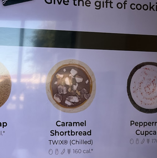 The first visit here was really good, though the cookies are a bit pricey and VERY sweet. Today was the second and possibly the last; I am embarrassed that I told my son and his wife how good this place was actually. We ordered four cookies when I asked to have two in one box and two in a different box I was informed it would be a dollar for the extra box. Really?? If these had been two separate orders would there still have been a dollar charge for a second box? What the heck? I declined the box, I have containers at home. That was annoying. Then she brings the cookies up and the Caramel Shortbread cookie looks nothing like the one on display on the counter (which I wish I had taken a picture of), nor did it look like the picture on the board, which I do have a picture of. When I mentioned this to her, she simply stated there is the same amount of caramel on these as there is on the display cookie. She said the caramel was just shrinking and then promptly walked away. So the caramel on the cookies you sell shrinks, but the caramel on the cookie you display does not shrink. That’s a bucket of bull. Really wish I hadn’t left a tip and its actions like hers that keep a lot of people from tipping at this type of place. So disappointed...