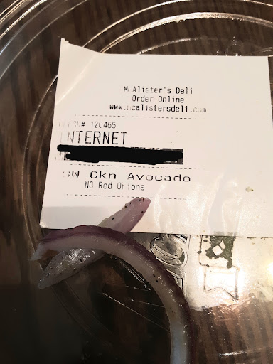 I have eaten McAlister's Deli since 2005. I typically order the exact same thing every single time. Because of this, I know what/how much should be included. I ordered to go, but from inside the restaurant because I've had issues ordering online--multiple times. I ordered my ultimate nachos no chilli sub rotel, extra of all the veggies except for the avocado, and I made sure my order was heard and understood. For being relatively simple, it tends to get messed up sometimes. The girls working up front were very sweet and helpful. THEY did their jobs to the best of their abilities. However, as tends to happen at this location, my requests were ultimately ignored. Attached is a photo of the "extra" veggies I ordered. Also pictured is the brown/black, mushy, bitter-tasting avocado. The avocado is actually what prompted this comment. The first time round, it was equally disgusting so I simply returned to the restaurant and asked for some that was slightly better looking. The woman in the kitchen (pinkish/reddish hair, middle aged with a sour demeanor) stated quite loudly that the rot was "normal" after exposure to air. Yes, I know avocado turns brown. This was black/brown mush and not worth the money I paid. I was given an equally disgusting avocado as a replacement, pictured here. Rude comments regarding my lack of knowledge in the behavior of avocado continued to ensue from the kitchen. Since I was already in getting the avocado, I mentioned that I had not recieved my extra veggies that were listed on my ticket. The attached picture is apparently what passes for extra here. The cup was quite literally slung through the window to the poor cashier who was trying to help me. Normally I would just ignore and move on but this has happened to me repeatedly at this location. I also happen to know that this is not how employees are trained to handle customer service, because I have asked what the policies are procedures are. This is my least favorite location and I only eat here when I cannot reasonably drive to the McKinney store. I would mention that if you've experienced issues here, McKinney is far higher quality and offers much better service. I've known the manager there since he started with the company and he truly cares about his customers--something we apparently do not warrant at...