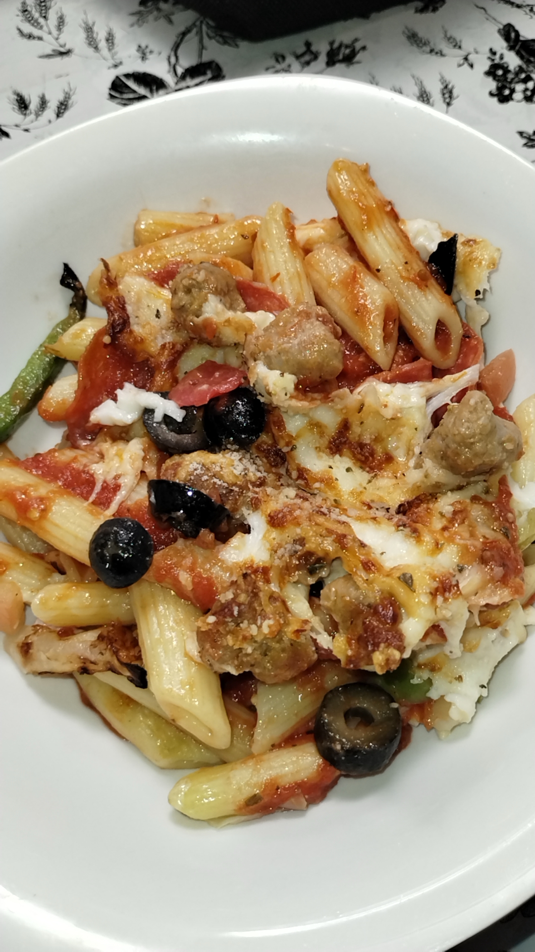 It was missing: beef, ham, mushrooms, pepperoni, olives, pork. The ingredients simply were not on the pizza.