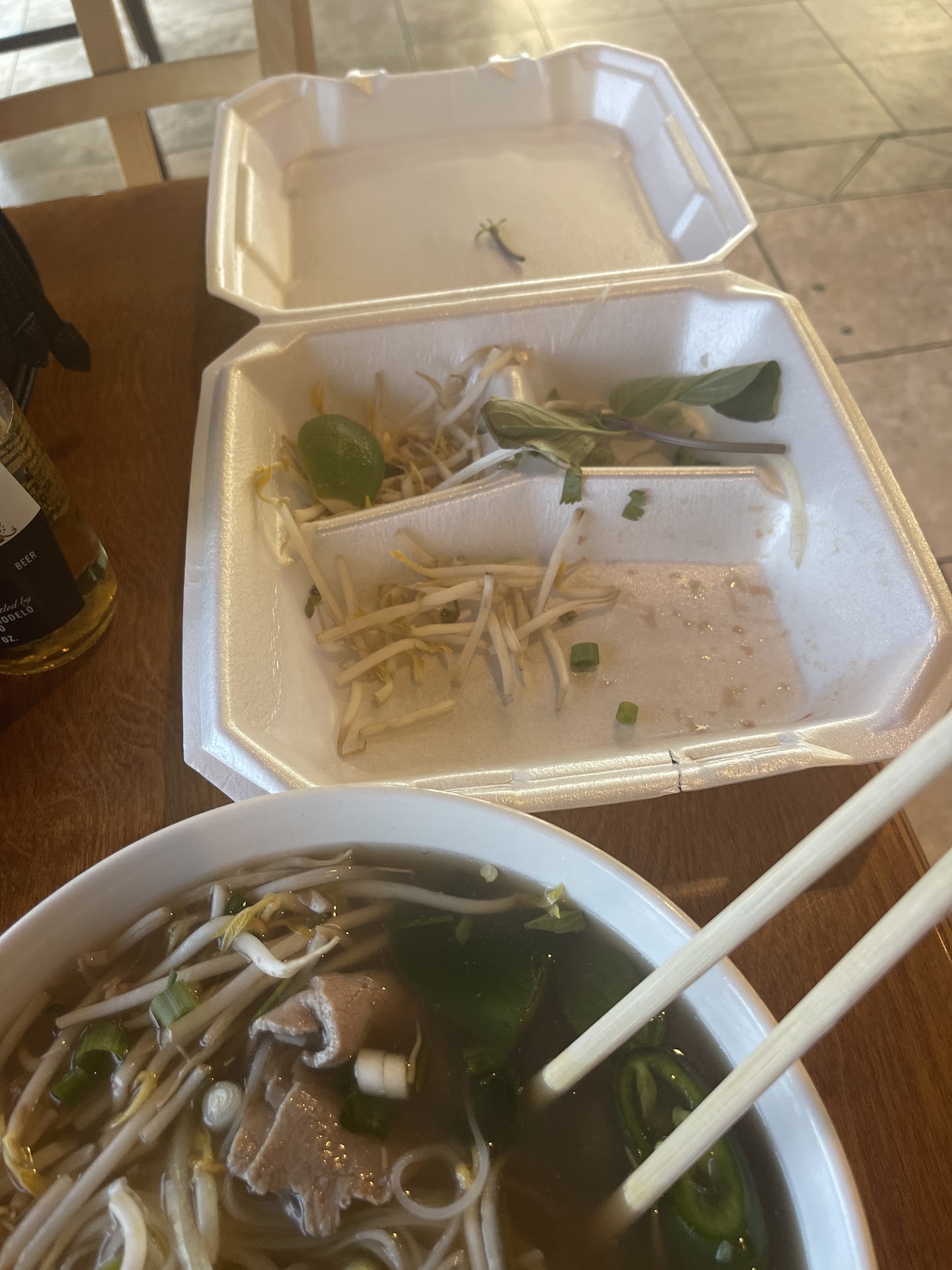 Read moreI have eaten Pho in a lot of cities in a lot of states. This was maybe a top ten bowl for me. It's really good and cheap. It comes with everything you typically find, and generous with the basil. The broth is flavorful without being too rich. I got the rare beef and round, I think. The rare was rare in my bowl, as it should be, but it was a bit tougher than I expected. The other meat was in pieces and some pieces were a bit unpleasant in flavor. Normally I gripe about too few noodles, but here I think maybe I got too many. The bowl seems a bit larger than I typically get anywhere else. For the price, I would have been fine if it was 10-20% smaller, with slightly fewer noodles. I would even pay a dollar or two more for better quality meat. Excellent service. Good tap water (many people take this for granted). If I lived in AR, I would come back, but I don't, so it was...