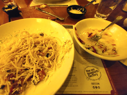 Read moreWe had a great time celebrating together with my daughters.The food was delicious as always. We ordered Chicken Parmagiana with Angel hair Pasta with a special request of Alfredo sauce instead of the Marinara sauce. It was delicious ! My daughters ordered Jumbo crab stuffed Raviolis....and Alfredo with Angel Hair Pasta for my other daughter. And my Virgin Strawberry Daiquiri drink was sooo refreshing ! One of my daughters also ordered a cream soda which was cool because it comes in a souvenir tall glass .....which ended up special for us because we really had something Special to celebrate and now we LL have this glass as a great memory of our fun time together in spite of a difficult situation in my life. And don't forget your dessert....Spumoni ice cream. And one of my daughters ordered Chocolate Cake . A slice that treated all three of us ! OMG...That was Amazingly Delicious !....Soooo rich ! The Service was great . We actually always have a great fun experience here ! We enjoy sitting in the bar area because of the great decor and atmosphere. The girls that serve us are always very pleasant and upbeat also. Making our experience great !We were celebrating my Claiming Victory over Lymphoma Cancer. I know God is healing me thru Chemo Therapy. We found out that the lime green color represents Lymphoma Cancer Awareness....So my daughters are supporting me by ROCKIN' these green wigs...as my hair has fallen out from Chemo Therapy Treatments. But I am LIVING STRONG AND CELEBRATING GOD'S HEALING TAKING PLACE IN MY BODY EVERYDAY ! THANKS SPAGHETTI FACTORY FOR MAKING OUR OUTING...
