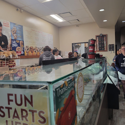 I came here on a break from work and I was in and outs in round about 6 minutes. Their ice cream is top of the line, and probably the best ice cream you will ever taste in your life. It’s rich and they have so many flavors. Yes, you will pay a ton but it is always worth it for me because the ice cream is just that good. I always get half cotton candy, half gooey butter. (Not mixed but I love both flavors but i don’t want two ice-creams so they’ll do two flavors if you want it!) Okay, here is the reason for the star I took away. I have grown up going to cold stone. I always loved the employees because sometimes they sang and they were always so nice to me. When I went in today, there were 4-5 employees behind the counter, and I was standing there for two minutes before someone said anything to me. I saw a mental “whose-gonna-help-her” between the employees. The person who served me didn’t look happy to be serving me either. Cold stone is cute, clean, and absolutely delicious, but if only the customer service was as golden as...