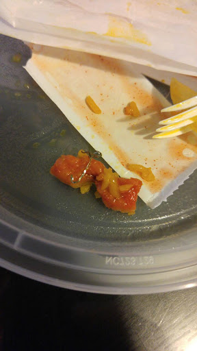 I am quite the regular here and while I don't dislike the staff or the food. I did find pieces of metal in my last take out order. I just don't know what to say, but I really hope the owners see this and will prevent such mishaps in the future. I think I will be taking a break from this restaurant for a bit. Here is one of the pieces of chicken I was about to bite into when I noticed a piece of metal.