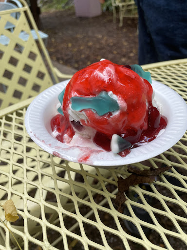 Super friendly staff, they were quick to offer recommendations and assistance! We went to try out the “Shark Week” sundae and it did not disappoint! Love that a local shop is offering specials that relate to holidays/fun things occurring like shark week! The prices were great for the amount you receive… we could barely finish our sundaes which NEVER happens for us! Everything was clean, organized, and the music was cute! The back area to sit and eat had their lights on and was beautiful. I was really worried to sit outside Because when we had visited the previous business (Cabin) I was eaten a live by mosquitoes while ordering, however, the new owners must have taken care of this issue because we didn’t have any bites! Looking forward to going back… this place is so quaint...