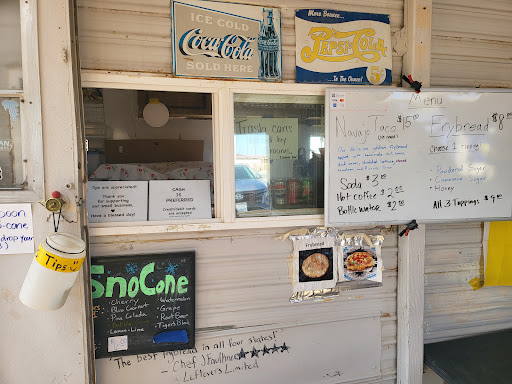 Read moreEnjoyable experience. The food was tasty (had both navajo tacos as well as fry bread with powdered sugar and cinnamon sugar in our group.) Excellent customer service. Had a pleasant discussion with the cashier. Yes, the prices are high, but we support native people and went, planning to eat there. Not many options within a great distance. The people working here also travel a great distance (over an hour daily,) so I am not too put off by the high price. We also sat and at at the provided tables. Some others had mentioned that there was no garbage, which was also our experience, so we took it with us and disposed at...