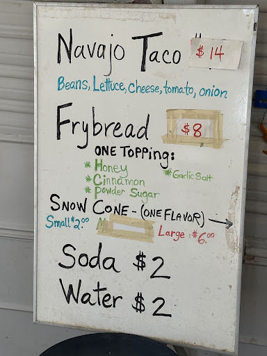 Read moreEnjoyable experience. The food was tasty (had both navajo tacos as well as fry bread with powdered sugar and cinnamon sugar in our group.) Excellent customer service. Had a pleasant discussion with the cashier. Yes, the prices are high, but we support native people and went, planning to eat there. Not many options within a great distance. The people working here also travel a great distance (over an hour daily,) so I am not too put off by the high price. We also sat and at at the provided tables. Some others had mentioned that there was no garbage, which was also our experience, so we took it with us and disposed at...