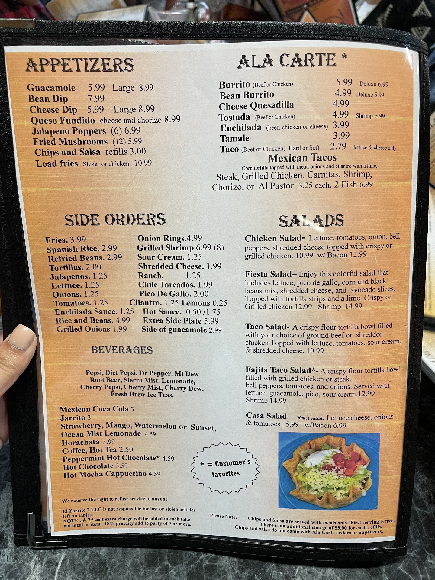 2 stars only because the food was good. I ordered take out at 5:18 and was told it would take 30 mins. I arrived at 5:46 and didnāt get my food until around 6:10. Making me wait 45+ mins for a chimichanga and chips/queso with no substitutions is RIDICULOUS. Someone came in that had a bigger order than me and ordered after me and their food was done right away. Iām pretty sure they didnāt start my food until I got there and then made me wait another 20 mins. That is absolutely uncalled for. They also never told me my total until they came out asking for my payment. The total needs to be said on the phone if youāre not going to have your menu or prices listed anywhere online. $17+ for a chimichanga and queso is pretty steep. There was also only 1 person wearing a mask and she was the hostess. I know the mask mandate was just lifted for IN, but businesses continuing to treat COVID like itās not real is the reason we canāt move on and that weāre the laughing stock of the world. I get that you have to cater to the Amish crowd around here that doesnāt believe in COVID or wearing masks but the least you could do as a business is wear them yourselves even if you donāt want to make your patrons wear them. Itās so irresponsible.