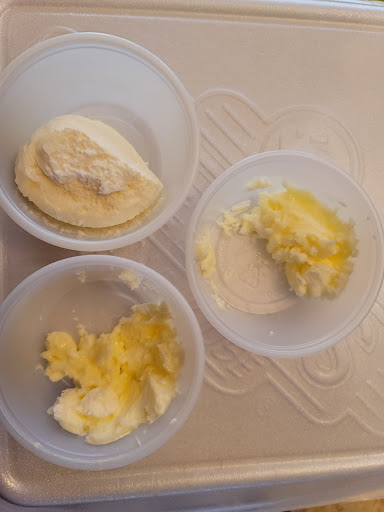 Second, I ordered extra rolls and clicked the option for regular butter. Well that's literally atotal of 10 rolls! You would think that if get a substantial amount of butter for that, but I didn't. I received a few butters that look pretty suspicious! Just look at the picture. I was like WTH is that!!!