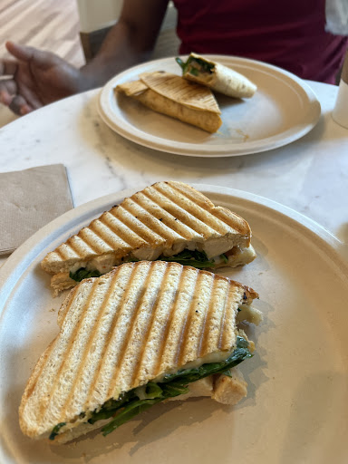 They have a very slow process for making drinks here and one rude employee can muck thung up even more. Went on a Saturday morning. There were about 4 people in front of us. Cashier was very nice and polite. Of course you're asked to tip at time of ordering, but you are expected to do absolutely everything yourself. We were asked if for there or to go. We were eating in. I happened to have a sprained ankle. We sat at the counter. Whole counter and the seats were full of food. Children must have sat there. We cleaned it ourselves, of course. No employees come from behind the counter to do anything. Customers were stacked around the To Go delivery space on counter where barista places the To Go orders. Man & woman who ordered for their family attempted to confirm their order and ask for help with an ill fitting lid. He could not get the lid on one at all. Barista copped an attitude with him. Didn't fix the lid that had not been put on properly and which he could not get on. He had to reach into work area to get his own drink carrier. He and his wife were obviously miffed with the service.