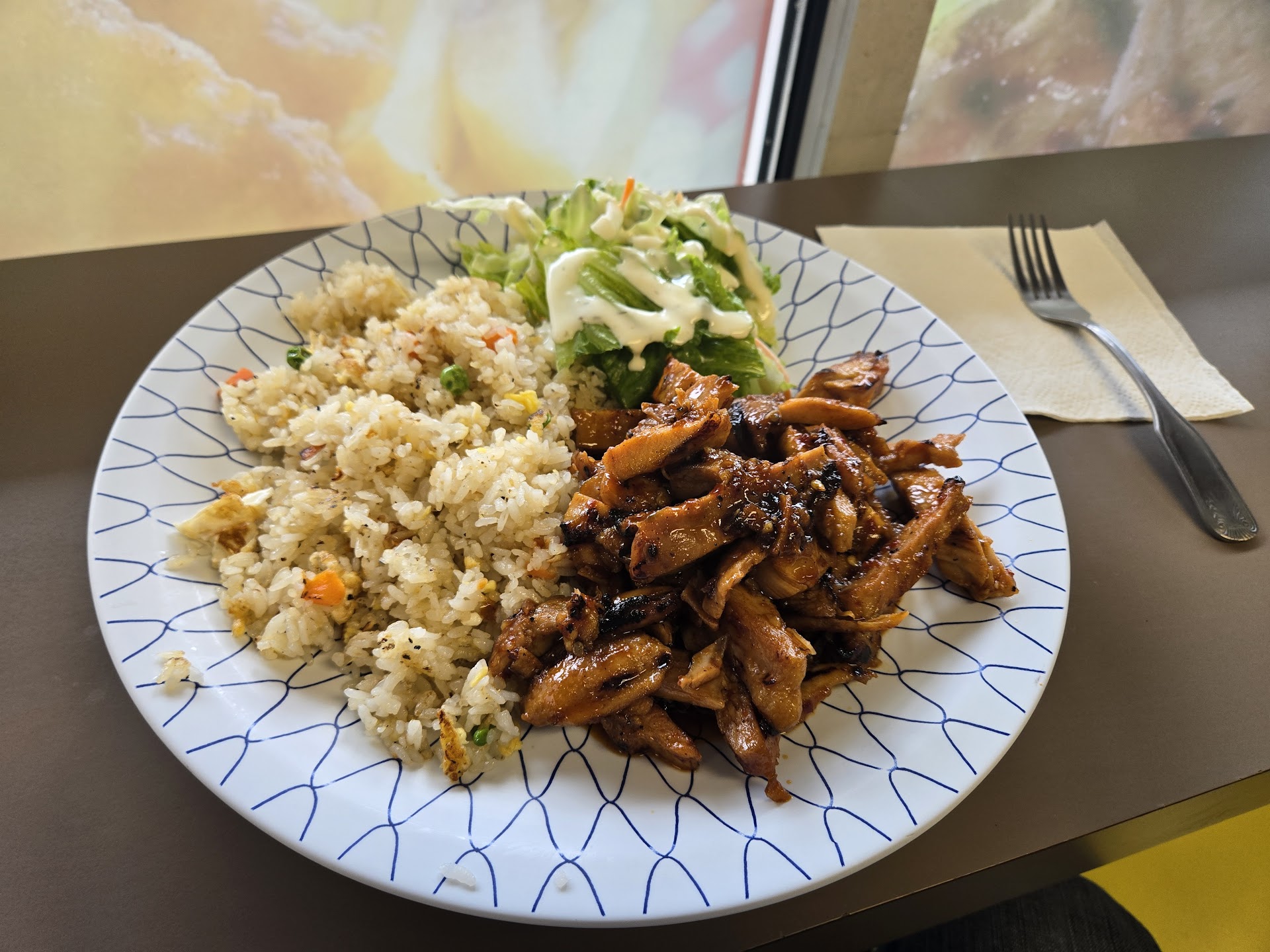Read moreFriendly pick up. When I got home I was cautious! Opening the container I smelled onions. There was a sweet taste to the chicken, but I had asked for the teriayki sauce on the side. Realized the grill had not been cleaned & onions had also previously been cooked for some other dish on that same grill. Will not return. I do not necessarily have an allergy, but my stomach is sensitive to cooked onions. Do not eat. Over the years my nose & palate are very zoned in on. It ruined the...
