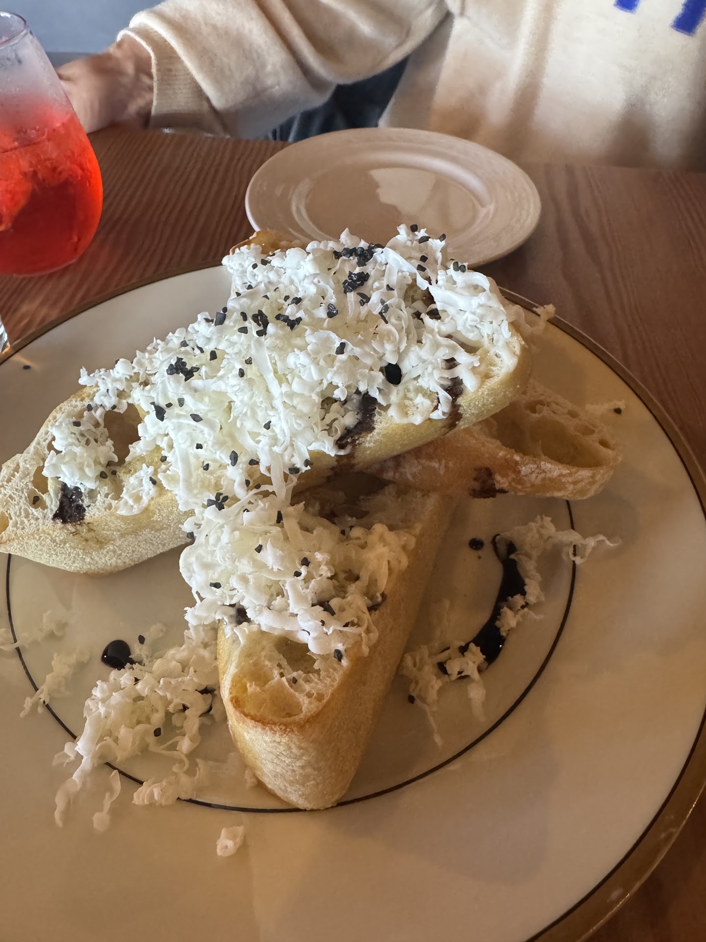 We started with their whipped cheese toast with shaved manchego, black garlic, and balsamic. Sounds simple, but it was packed with rich, complex flavor and had that perfect balance of creamy, crunchy, sweet, and savory. Honestly could’ve eaten another plate.