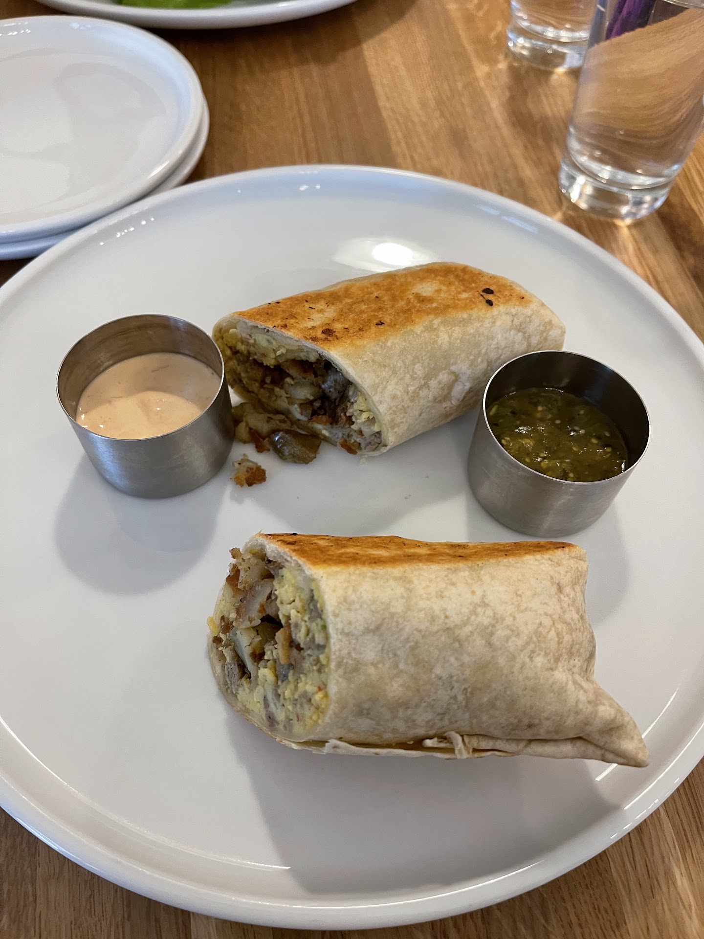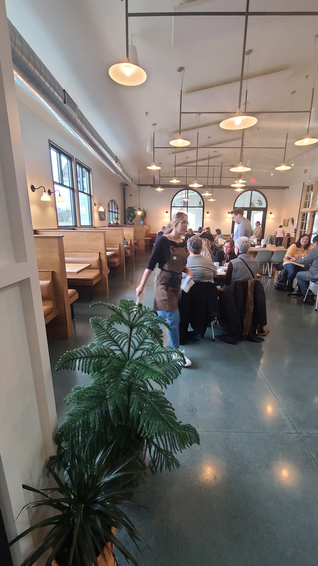 —Probably sometime in NOV 2021: Stopped in on a Saturday morning for breakfast. Got told there was a 30 min wait. No big deal; they had a nice waiting area. I think we got seated in less than 30. I like the atmosphere and the fact that they have a water/coffee station where you can get your own water. Except there is no ice. The staff is very happy and friendly. I like that you can order at the counter and someone brings your food out. Much better than waiting for a staff member! I didn’t like the ketchup bottle. You can barely get the ketchup out. I tried a knife, a straw. And then kept hitting the bottom of it. Which if i continued it would result in getting ketchup on my clothes. Please change this. I felt really full just after the classic breakfast and vanilla latte i got. I would come here again; i really like the atmosphere and i will have to...