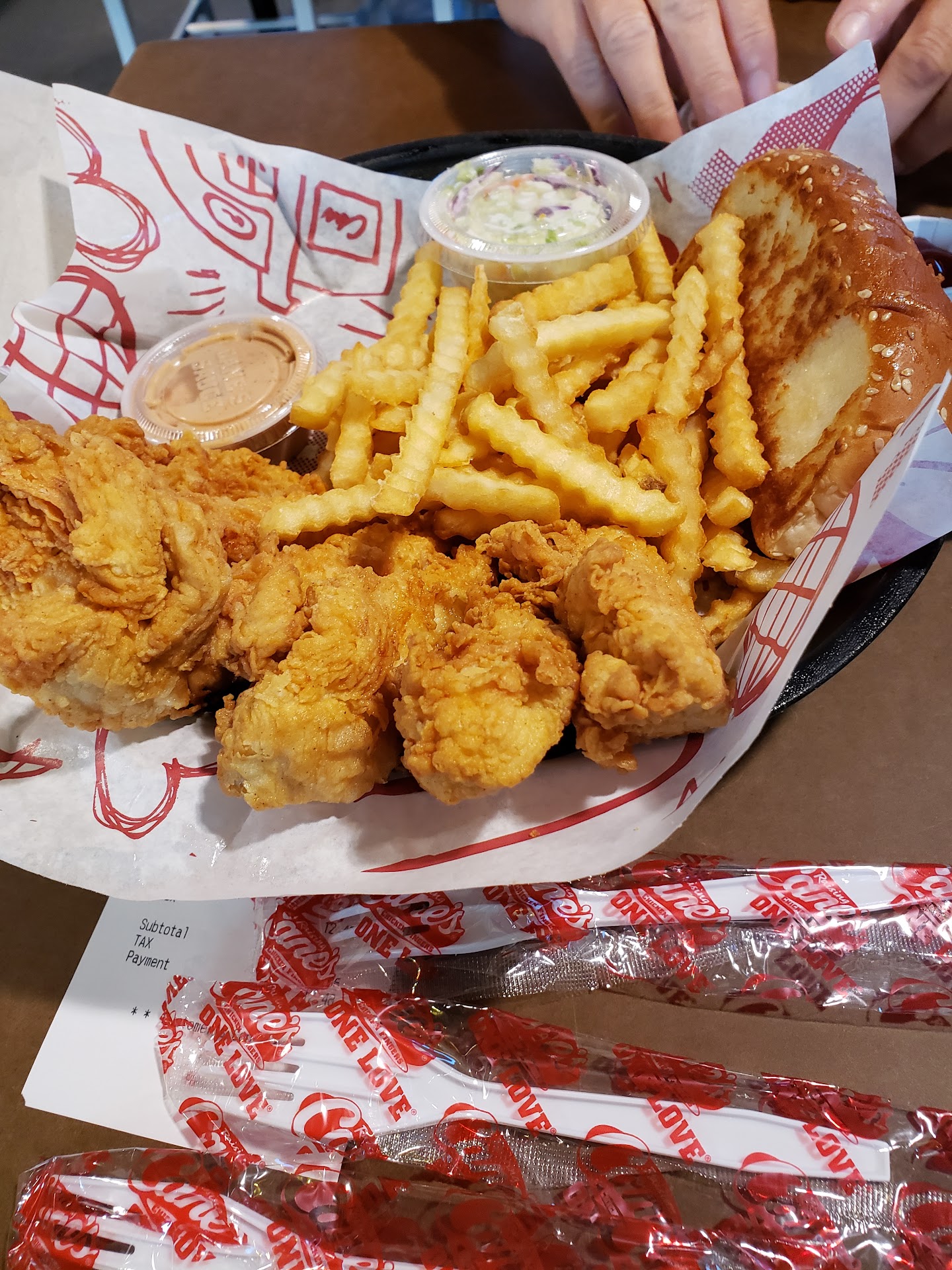 Read moreA week or so ago, I went to this location because I was craving some delicious chicken. It's an incredibly popular location that had a long line in the drive-thru, which I'm happy to see and I'm glad to wait. Once I entered the coned off area, I reached to pull out my wallet and realized I left it at home. I waited patiently, unable to exit the line. Once I got to the order area, I kind of laughed and said I was passing through because I forgot my wallet. As soon as I said that, the manager chimed in offering to pay for my meal. I didn't want to take advantage, but I was hungry, so I just ordered two fingers with a sauce.