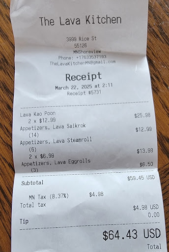 Read moreLava Kitchen was amazing. You're missing out if you haven't tried it here. It might seem small and have a pinch of a Chinese theme to it but the food is phenomenal. Some of the best chicken pad thai and stir fry I've had in a while. The chicken pad thai was saucy, sweet and flavorful. They have a spice level of your preference. The steam rolls hit the spot and the dipping sauce was like a peanut pepper sauce. They added a pork belly and ground beef pad kra pao which was such a great combination. I would come back and try other menu items. Our food took maybe 20 minutes more to get everything considering my Fiance and I were the only ones in there. It was worth the wait. Everything...