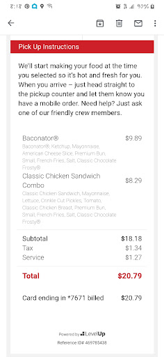Read moreUsually have a fine experience, nothing great but nothing bad. But last night, (5/14, around 10:40 pm) left me leaving a one star review. I waited to order at the drive thru for about 10-15 minutes, finally ordered and drove up to the window. I ordered a large 10 piece meal with a peach lemonade and a large dave’s double with root beer. I handed the kid my card, though got no receipt. I got handed a small strawberry (?) lemonade, the kid who took my order completely misheard my order and thought I’d ordered a small some type of burger meal with a strawberry (?) lemonade. I told who seemed to be a supervisor that this was completely wrong, so she got me the correct lemonade, though still a small size. I went back around in line and said my meal was completely wrong, I asked for a 10 piece and large fry. He said okay it’s two dollars and some change. I handed him $3 and never got a receipt, never got my change, and didn’t receive my fries. I had enough and didn’t care to go back (after being there for over a half hour) so just sucked it up and left. The male who was at the window looked to be 15 years old and of African-American decent and had braces. I will not be returning and will choose a competitor...