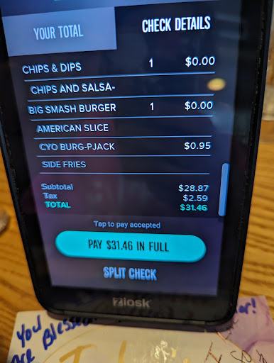 Read moreSo I know that they're idea of having different people do. Different tasks is what they're doing to try to make it more efficient for their customers. When you get to your table, somebody comes and takes your order. Someone else brings you your drinks some. One else brings you your appetizers. And someone else brings you your food, so it's very confusing when you are trying to ask somebody to bring your something else. Our waiter was nice enough. The person who brought our drinks threw them at us not to mention they put them on the opposite side of our table where no one was sitting. She was gone before we could say anything and I didn't get my sweetener for my tea. Then someone else came with our appetizer. We got the white quest skillet. It was good but not worth the price. Lots of tortilla chips but the queso was really small. Finely our food came. The person who dropped it off gave mine to my husband and his to me. They left before we could say anything. Eventually we found our waiter and asked again for my sweetener. I only got the loaded baked potato soup. It was ok. Nothing special. Then after all that chaos you have to get your own check on the kiosk and pay by yourself at the table. Not a fan of that. Who gets the tips? I'm assuming they share. It's hard to complain about service when they throw stuff at you and leave before you can...