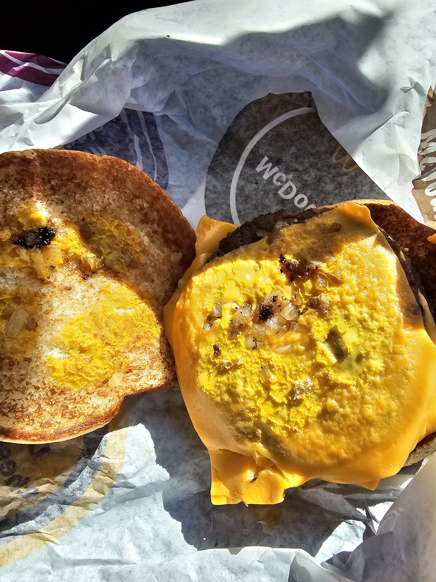 Do you know why the cheese hangs out from only one side of the Fish filet sandwich? Because they're only using half of a slice of cheese. They place it there so you'll see it while not realizing it's only a half a slice they've placed on their sandwich.