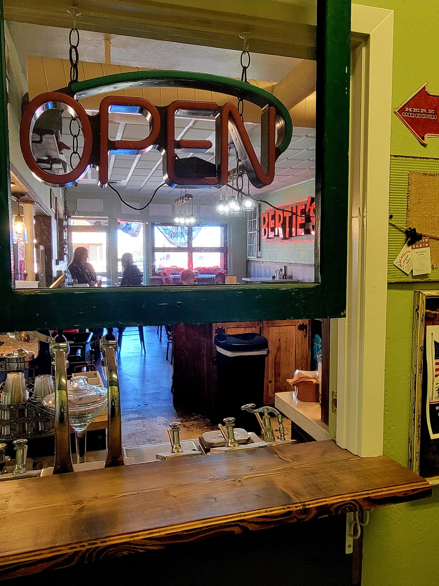 First off, it is difficult to figure out where to park. It sits right next to the Cattleman's that has a huge parking lot shared with a bank. What you can't easily figure out is Bertie's has a full parking lot around the back, and there is an entrance back there too. Tourists like us would not necessarily know that... so we parked at the Cattleman's (did not get towed, and were told it had the same owners) and walked right on their patio. They are VERY pet friendly, so that always wins me over. All of the staff were incredibly friendly not just to our pet but to us as well!
