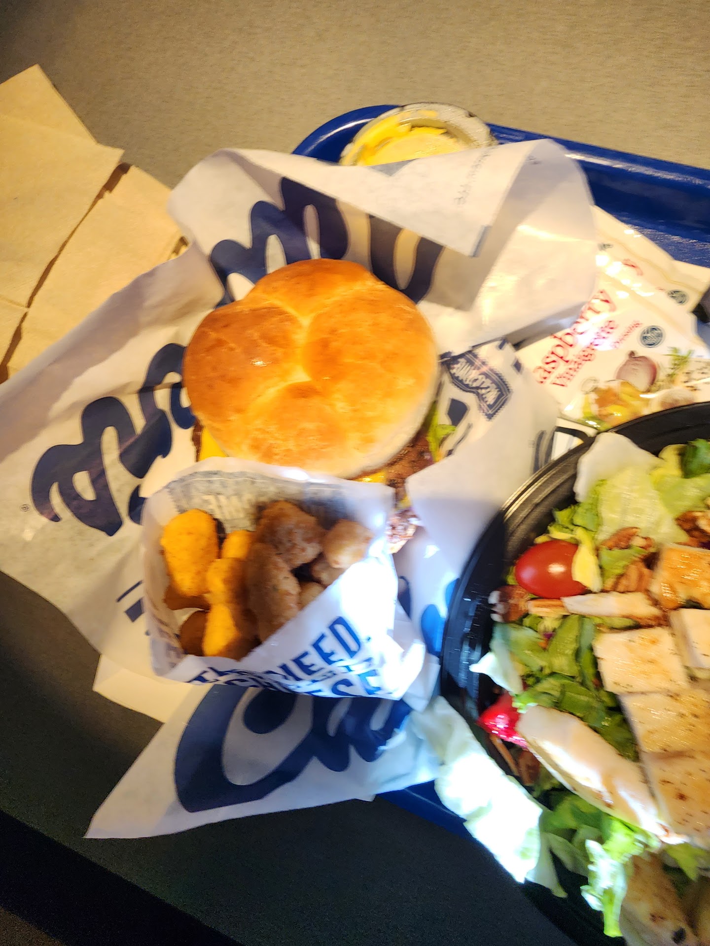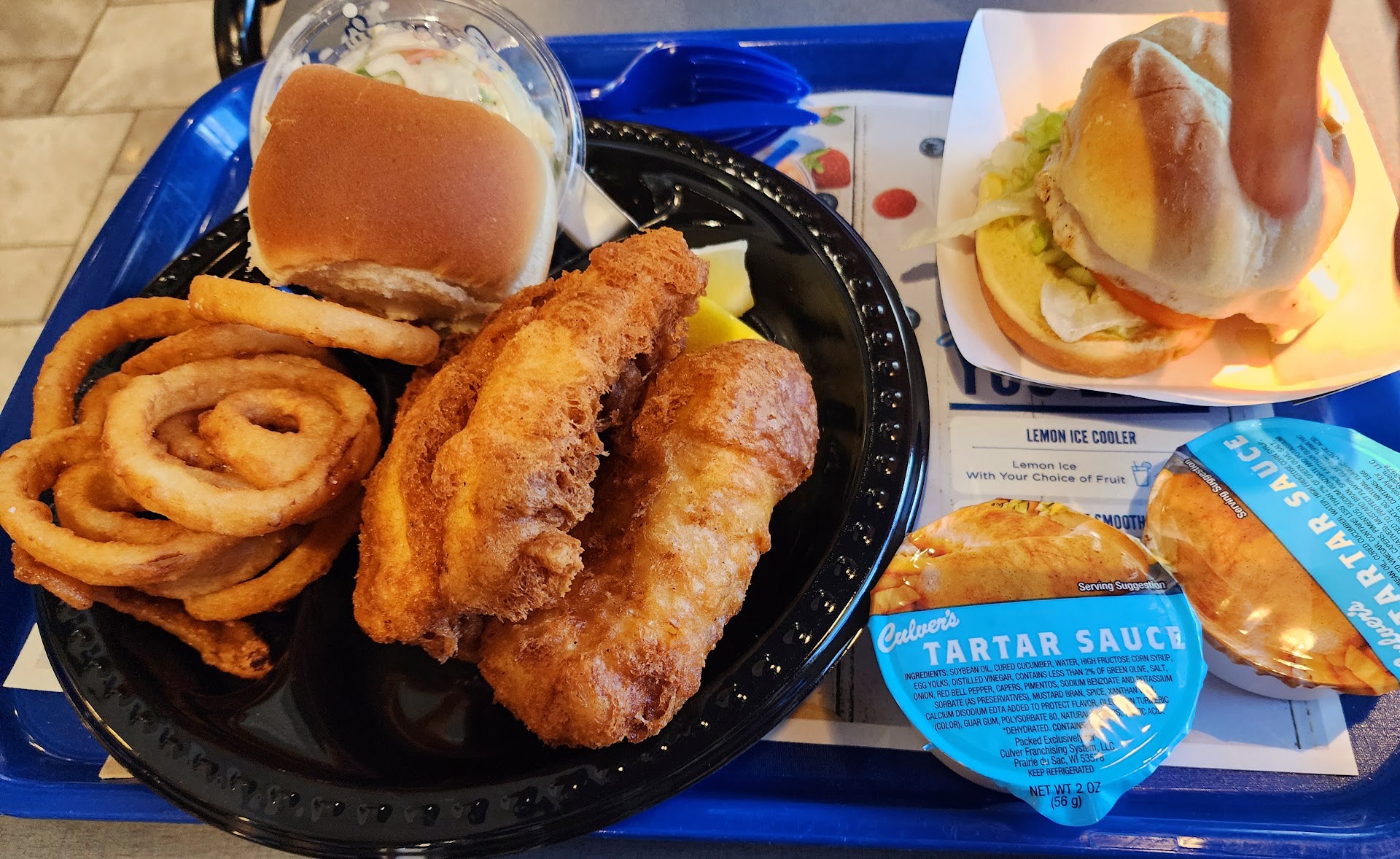 Read moreMy niece/nieces and their grandpa like to dine here a lot. I come here every so often only as the driver or to meet up with them. They tend to order the butterbuger and cod dinner/cod sandwich. I like the cod sometimes (to get my omega-3 fatty acids) and the grilled chicken sandwich. Also, their ice cream (chocolate cone) is always, always yummy (not sure if it was custard)!!!!!Yesterday, I brought my dad there after his doctor's appointment. He had the cod dinner with onion rings. The one thing we always noticed is that the burgers tasted under-seasoned (bland). And, the cod as well. Maybe they are just concerned about the customer's who might have high blood pressure or something...who knows? So, we always grab some of the salt and pepper packets that are available by the soda fountain. Or, maybe the cooks are just too young and inexperiened. The 2 guys yesterday were working hard. The gals seemed to be distracted and were talking amongst themselves. One of the workers was a tall/loud gal. I'm sure she is sweet and sincere, but she really needs to turn the volumn of her speaking voice down several notches. :-D Waited in the order line 2-3 times to get more food, etc. I finally had to ask one of the gals if she was ready to take my order. She seemed surprised that someone would ask her such a question. I think the problem with many restaurants nowadays, is that they have a tendancy to hire workers who are just too young and under-trained. But, I guess that is just how it is and the adults really don't want to work at a chain restaurant. Oh, worth mentioning is the fact that the food reminded us of the food we had in Pennsylvania (plain/tasteless) when we lived there for many years. Thank goodness for salt and pepper!! 5 stars for the 2 guys and the atmosphere of...