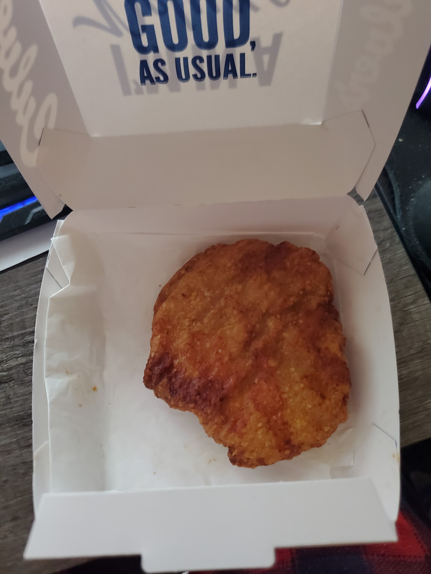 That wasnt this recent visit, which is the one that put me over the edge. They really gave me a crispy chicken patty with no bun today. When the hell did I say no bun? Never. I said plain. That comes with a damn bun guys.