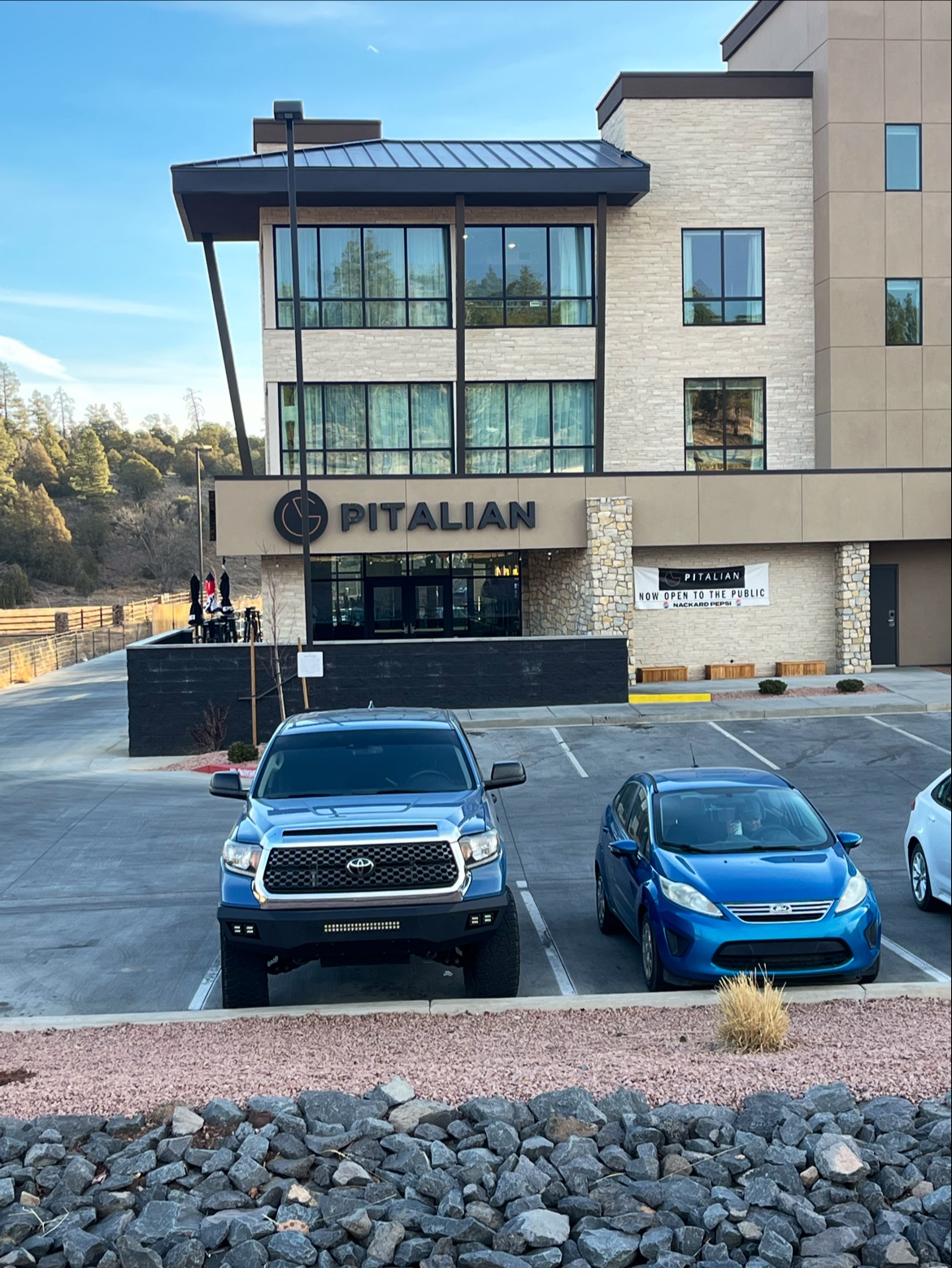 Read moreMy thoughts are varied on this establishment. The pizza was pretty good. The pasta was wet, soggy, and did not pair well with the low quality Alfredo sauce. It paired even worse with the watery marinara sauce forming a soup on the bottom of the bowl. I suggest you forget this place has pasta because no joke, pasta from a grocery store brand box is better. Order the pizza which is good if not a bit overpriced for the area. 17-20 dollars after tax for a very small pie is a stretch, especially after you include tip for unknown reasons. This place is pretty mediocre as a whole with the exception of the awesome view. Ordering was also a mess, but I feel like that will likely dissipate with time and experience. We had to repeat our whole order because there's no connection between ordering and checking out. Not so bad if you're one person but a party of 5 or more... That's a little annoying to recite. The service was pretty much non existent aka counter service for us. Of course, the 3 options to tip 15 - 20% for the unclear level of involvement of the staff members were present BEFORE receiving food, a pet peeve of mine. It sounds like they have some growing to do. I hope they improve the pasta, service, and overall process because they have a gold mine...