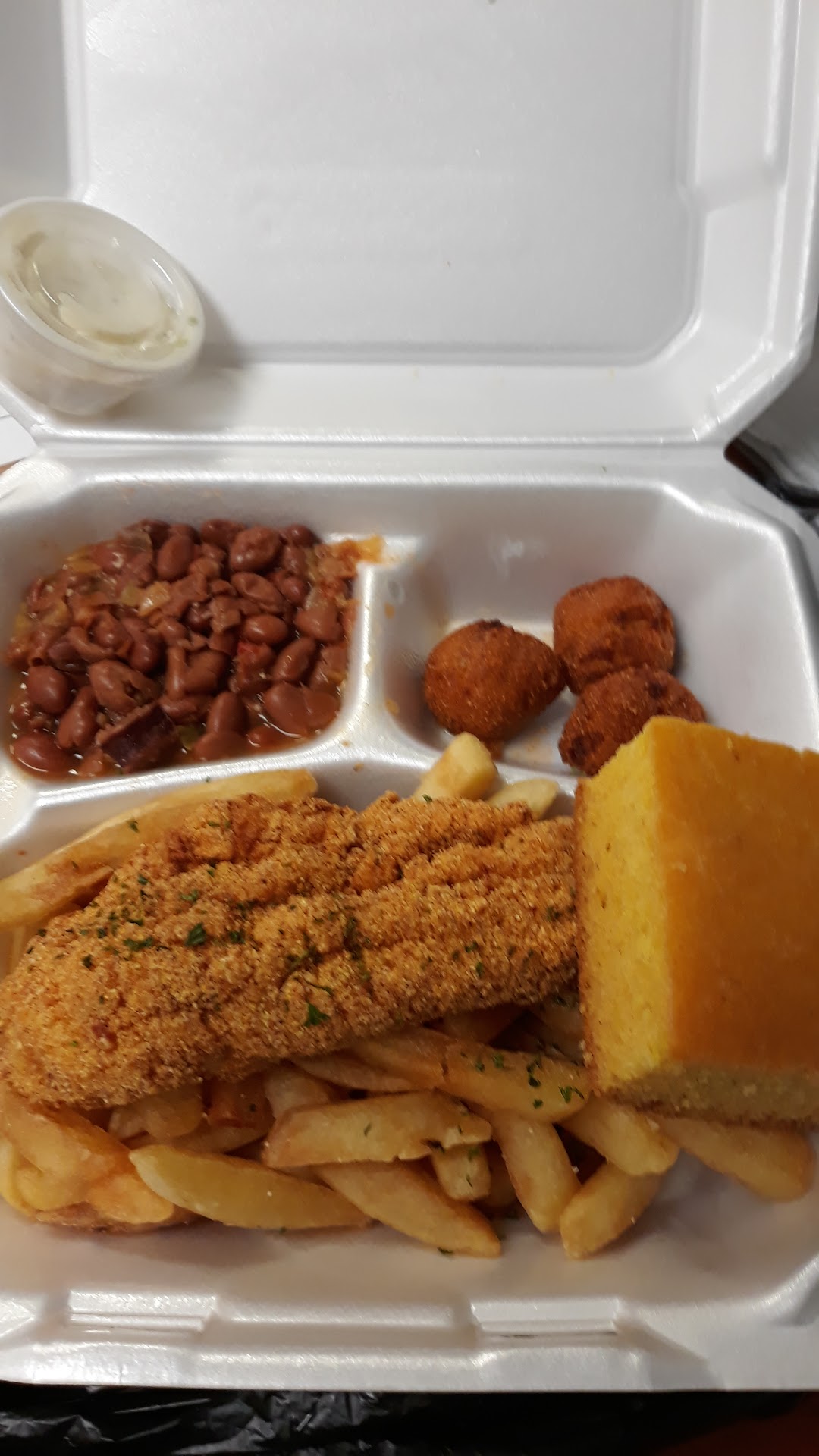 I love local eating spots. This was first time eating at Us Up North. It was Fish Fry Friday...Celebrating North Louisiana Cuisine. Upon entering the building, we were greeted by the young lady behind the counter. She was very nice. Answered any questions that we had. I ordered the special of course. It was fried catfish fillet, french fries, and hush puppies with (my choice of side) mash potatoes and gravy. The wait time wasn't long at all. Food was delicious. The catfish was seasoned just right and not fried too hard. Ohhh, and the dessert...peach cobbler!!! Delicious as well and just the way I love it, not too many peaches and lots of crust!!!š Chef Hardette came out and spoke to and with everyone that dined in.