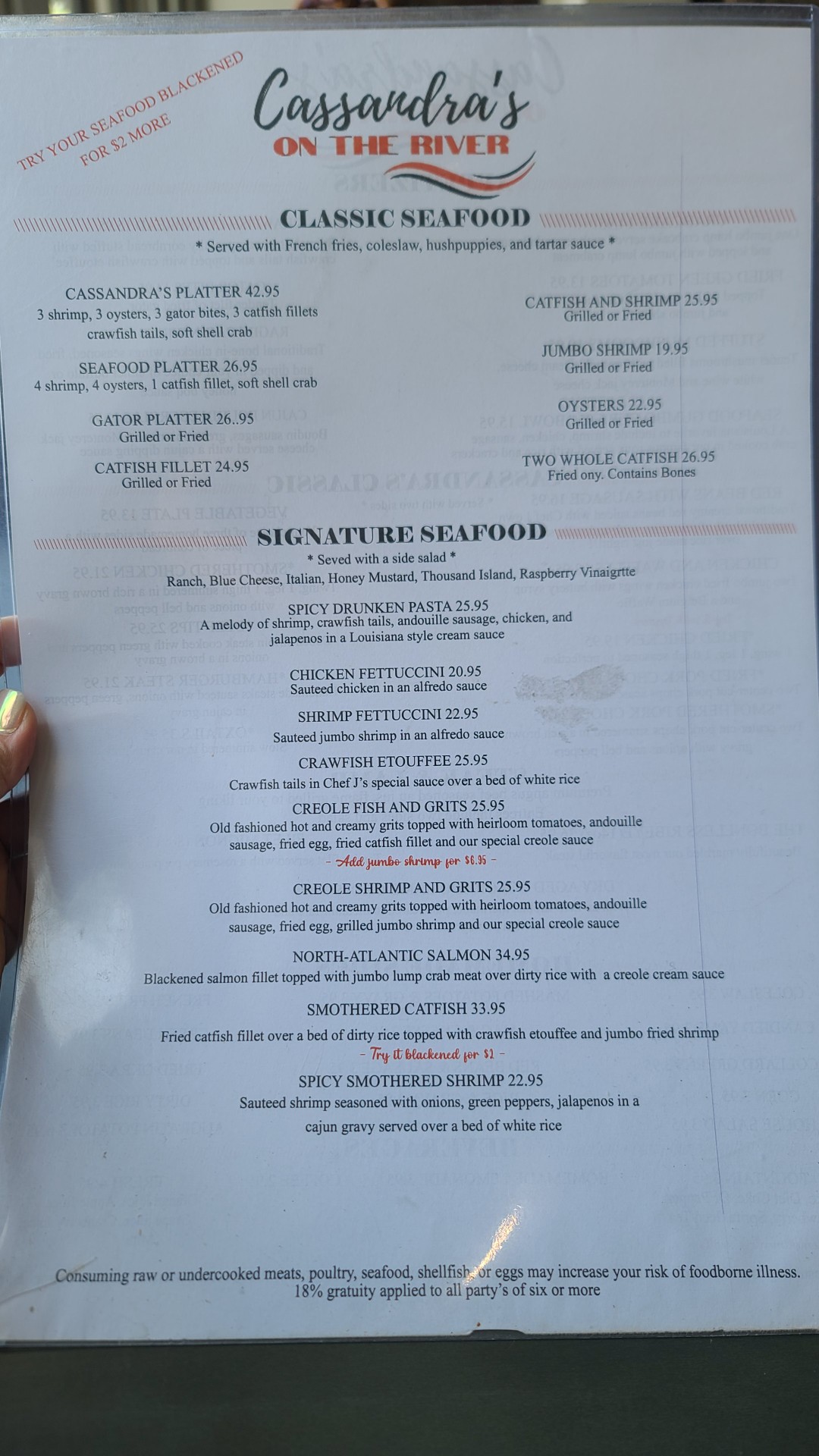 Read moreIncredible new addition to the Red River District! A true jewel! During my recent layover w/ my first week of Aug.'24 crew our hotel shuttle driver mentioned this new restaurant that he had the pleasure to dine in and had nothing but great things to say. With this layover being a regular w/ in the last 2 mthz, I have always found myself going to the same restaurant every overnight. Well, this time, I was ready to try something new. After speaking w/ the driver and getting a few other restraunt recommendations, I decided to look up this new restaurant on Google. I was surprised that only desserts and the dessert menu were the only things displayed on the Google review page. So here is my review w/ the current menu Aug. 2024, as well as the food items I had to try on my first but definitely not last visit. With that said, the restraunt was large, open, clean, and inviting. The service was friendly, welcoming, accommodating, and informative, and my waitress provided excellent service from the moment I walked in till the very moment I walked out. The food here is amazing! Delicious full of great southern homestyle cooking but presented in a more upscale sophisticated way of refined restaurant plating, taste profile, and flavors. Looking over the menu, the food choices here range from smothered porkchops, seafood platters, and even ox tail. The choices for me all sounded so good. I first ordered a cup of the house seafood gumbeaux, then paired it w/ the stuffed mushrooms appetizer (stuffed w/ spinach and cheese). Another appetizer that caught my eye was the crab cake served w/ a romalade sauce. The crab cake appetizer was all real crab meat (rather than breaded filling/ stuffing). Which made it worth the price point. For my entrée again, it was a difficult decision, but I wanted to continue the seafood theme, so I ordered the seafood platter. With the platter, you have a choice of having your fish fried, blackened, or even smothered in fresh made gravy. I chose blackened. The platter comes w/ a side of coleslaw, fresh cut seasoned fries, or even rice and gravy. Definitely recommend stopping by here if you're looking for some delicious food, great friendly service, and nice 90's ol' skool r&b slow jamz n ol' skool soul. They had a lot of my favorite songs n artist playing. A lil' bit of Al Green, some Tyrese, I was jus jamming to the music, eating my food, and getting lost in the moment. Note I splurged a lil' it was pay day and I had to try as many menu items I could during this first visit. I definitely want to try all the menu items and additional sides they have to offer, especially the smothered porkchops, fried chicken, ribeye steak, lamb chops, red beans w/ sausage, chicken or shrimp pasta alfredo, ox tail, shrimp & gritz etc. Yumm... Thank you to the restraunt's working staff, cooks, management, and owners. See you all again soon! Next time, I might have to try that bread pudding my neighbor across from me was...