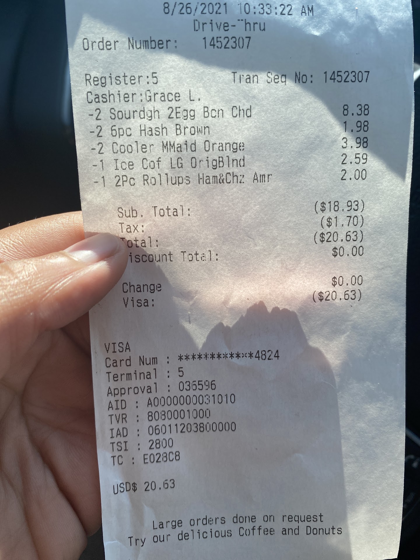 Read moreCame here with my husband and daughter on a Saturday morning. There was couple in front of us making an order who left frustrated that the store was out of everything they asked for. My daughters chocolate milk was sour and expired, after looking into the fridge for more milk there were others which were also expired. If I hadn’t tried the milk my daughter would have drank the sour milk and gotten sick. She would never be able to tell me as she is non-verbal. Unacceptable! Our bacon, egg & cheese on a plain bagel has not yet been made as our daughter was almost finished with her donut. The wait time with all the bodies in the kitchen and behind the counter was absolutely unacceptable. We waited so long I finally asked whether our food was ready yet. The boy looked at me and rudely answered “your food will come when it comes” finally after a few more minutes of waiting—along with others who had either wrong orders from drive though, or just like us waiting for their food—my husband asked where our sandwiches are. Another worker asked what we had ordered we told him, to which he replied “we don’t have plain bagels” again, totally unacceptable! They made them on whole grain, which were pretty dry and gross. The whole sandwich tasted so bad, I’ve gotten this same sandwich for years from DD’s all over the US and this by far was the worst tasting sandwich. The napkin holder was empty of napkins, the store looked dirty. Tables not wiped and someone behind the counter kept burping loudly—this happened three times and the female manager said nothing. Every customer in the store looked at each other mortified each time the man burped. Every workers face was sour or annoyed. Needless to say, we will never come back here again. I’ll give Starbucks my business...