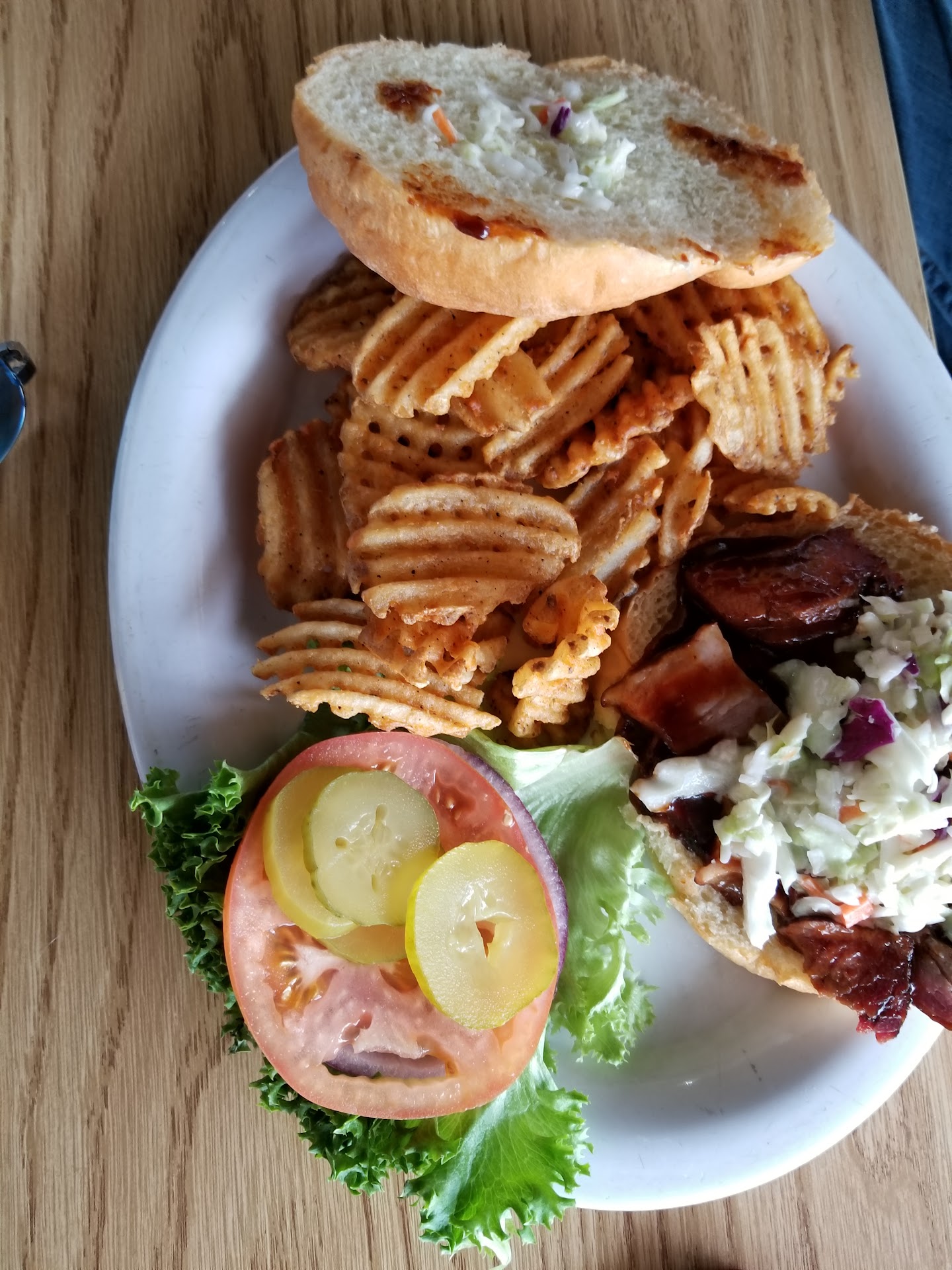 My wife loved their gumbo. I loved the burger. It was just small enough to fit in my mouth. Any larger and I wouldn't have been able to bite it. So now we can't find our way out.