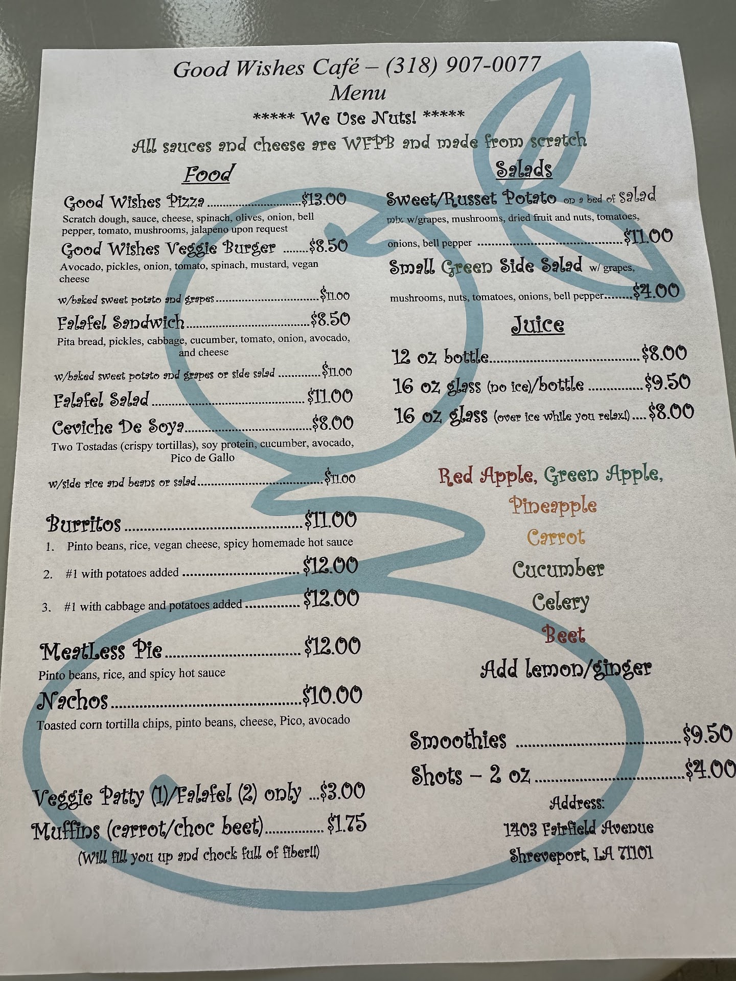 Read moreI was in town and found Good Wishes Shreveport on Google, so I decided to drop in—and I’m so glad I did! I had the chance to meet the owner, who was not only welcoming but full of great tips on healthy eating. It’s rare to find food that’s both healthy and delicious in Shreveport, so this place was a fantastic find! I ordered a veggie burger and freshly juiced beet juice to go, and both were amazing—great flavor, and you could taste the freshness in the juice. Anytime I’m back in Shreveport, I’ll be stopping by. Thanks, Good...