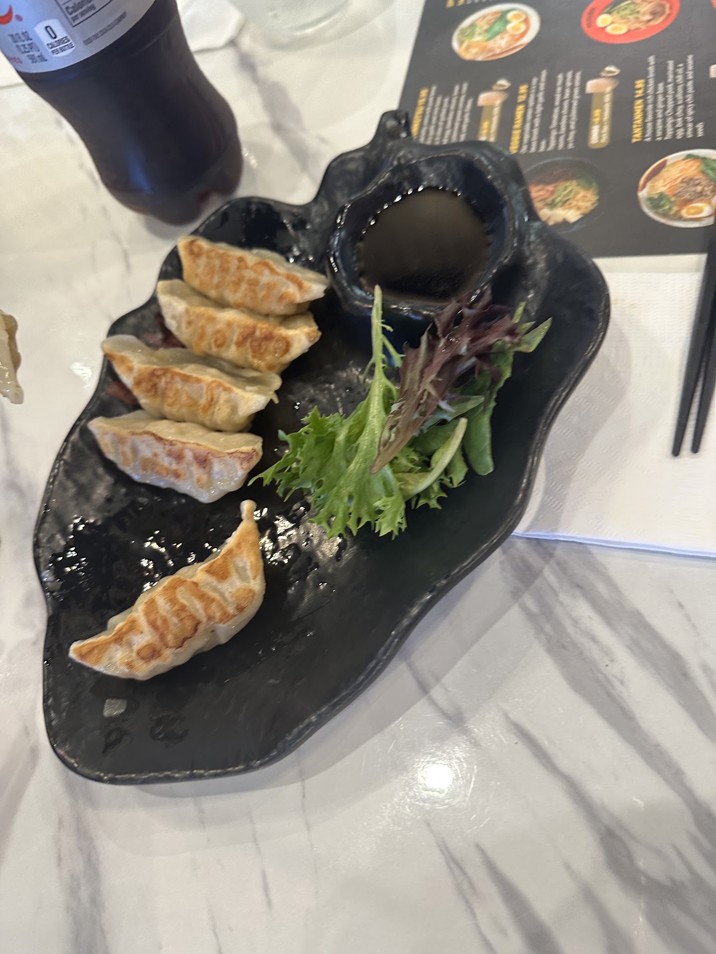 Came here for the first time with family two days ago. We sat down and the lady poured my mom and sister water, we were missing two cups one for me and one for my nephew. We waited probably 15 minutes before anyone came back to the table. The glasses had food on them and so did the silverware. I ended up not drinking anything since the second round of dishes was dirty as well, neither did my mom. My mom ordered the veggie ramen that had tofu, the broth was good but i found it odd that it tasted like seafood, the veggies in it were good but there wasn’t anything special about it. My sister ordered the spicy ramen bowl with pork, there was nothing spicy about it, it barely had any flavor in it … it tasted almost like teriyaki, the shin ramen you buy at the store tastes better. My nephew is only 5 we ordered him the fried chicken, breading was good but the chicken was dry and had no flavor. I ordered two servings of the bang bang shrimp, I was disappointed when it got to the table, it was 4 frozen butterfly shrimp you buy from the store with honey mustard on the side, not what you’d expect when paying 10 dollars for that. I also ordered the spicy edamame as well, that turned out to be the only thing I liked, I would recommend trying that, I’d stay away if you don’t like salty food or can’t eat a lot of salt. Lastly I ordered one of the pork buns, this was another disappointment, it looked nothing like the picture …it was one small piece of meat with tons of spring mix and a splash of sauce, it was dry and the bun was tough to bite into. I think the place has potential sorta… I think they need to work on the atmosphere of the place too I love the anime vibes, I am an anime advocate. When I came in I thought I would here the demon slayer theme song since they had so many figures of the anime, instead there was only Spanish music playing the whole night. Ended up spending 100 dollars for all of us 115 plus tip. It’s basically 15 for a bowl of mediocre ramen. Again it has potential maybe I’ll try it again in a...