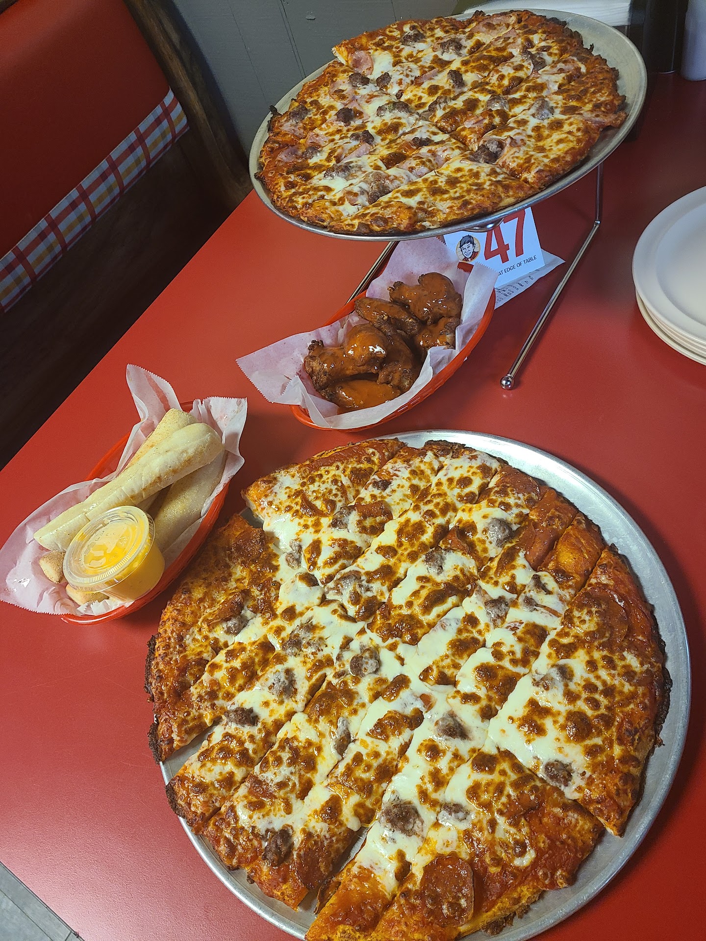 Read moreHad to change my review from 5 stars to 1 star. This restaurant has gone way down hill in the last 6 months. When we order online it says it will be ready in 20-25 minutes. We wait that time and then arrive, and we have never gotten our pizza in less than 30 EXTRA minutes beyond the initial 20-25 minutes. This has happened on each of our 3-4 occasions in the last few months. Every pizza we have received lately has been undercooked. If you order bread sticks, they will taste like cinnamon sticks. I'm guessing pans aren't cleaned between uses??? Not sure how else that happens. I'm actually allergic to cinnamon so I can't even eat them when we order and get them with cinnamon coated on the bottom where it touches the pan. I am tired of wasting my money so we are no longer...
