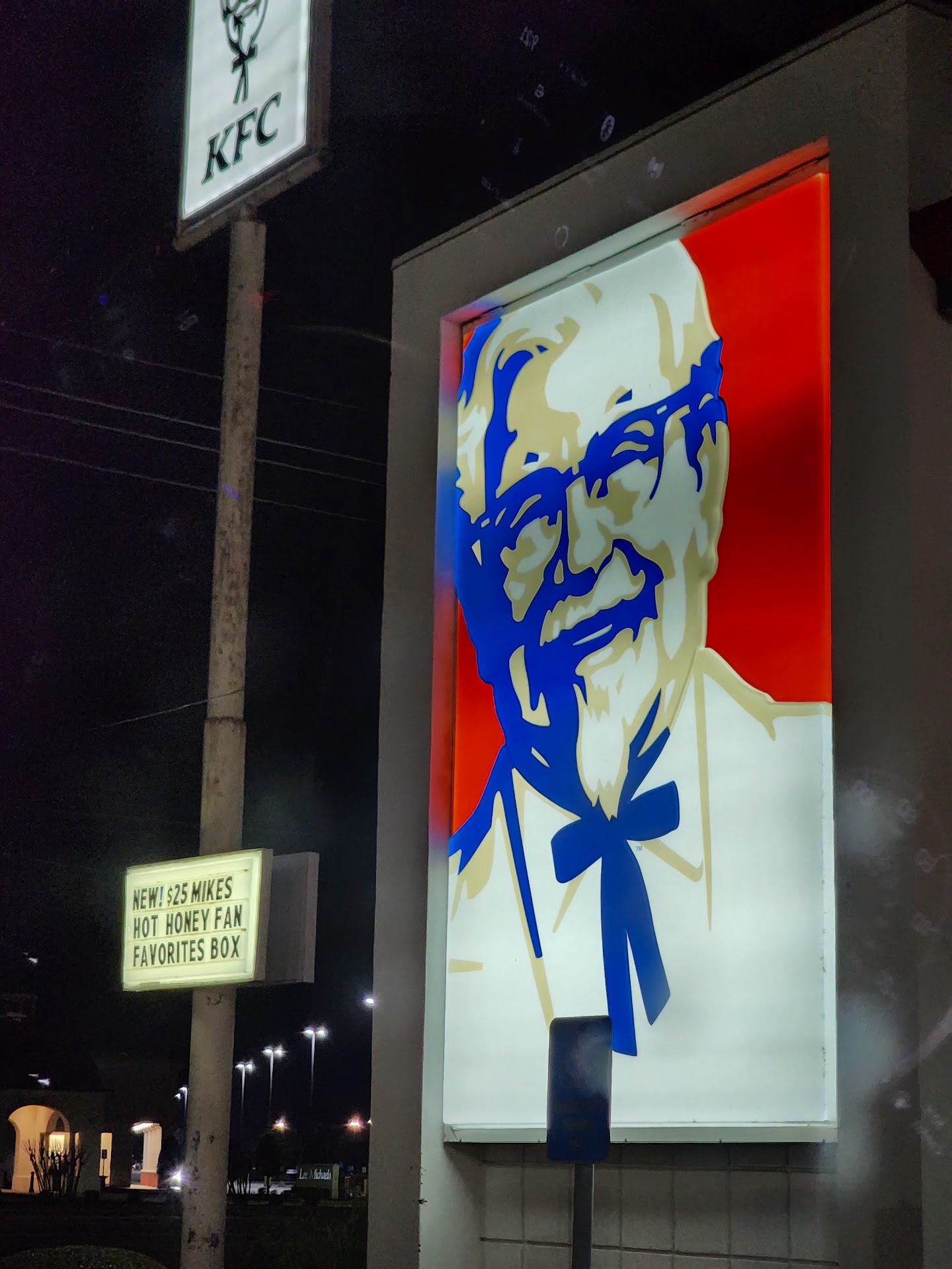 Read moreI used to really enjoy KFC but in these last few years, they have really gone downhill!!! Their chicken is smaller, fattier, not as tasty and not as friendly anymore. I've been to a few of them between Marshall, Tx. and Shreveport, La. The Marshall store needs to close down! They're pitiful!!! My wife got a chicken pot pie 🥧 there and it had not one piece of chicken in it. She was so mad about it that we went back to tell them about it. We bought another one but this time they opened it up and stuffed it with chicken. Too little, too late. I don't like chicken with a lot of fat inside of it and I want a decent size of meat. Think they can do this? Hmmmm The stores in La. are better but not what they use to be. They need to step up...