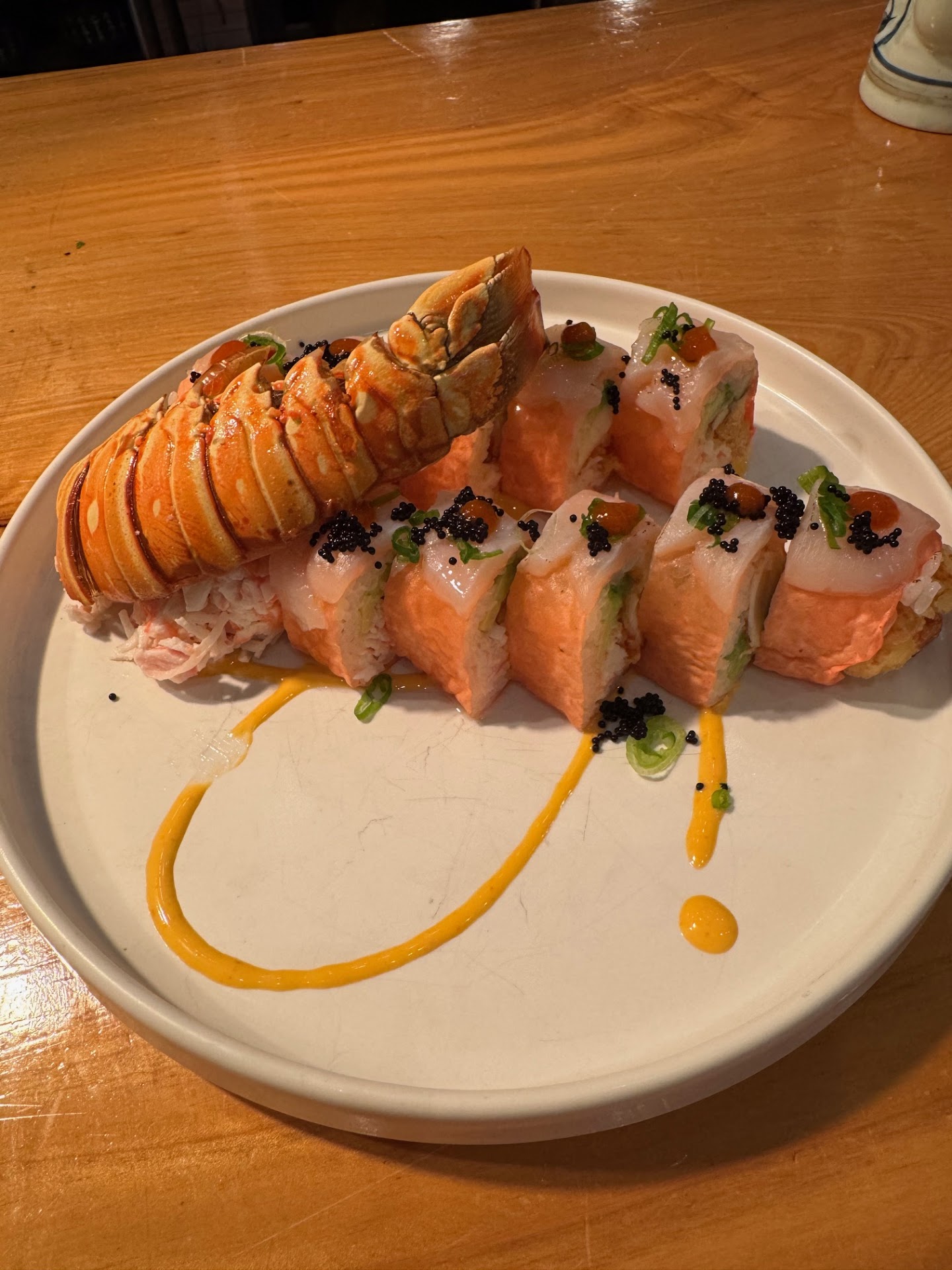 Moving to the food, I tried several dishes, each more captivating than the last. The Crazy Rich Asian Roll was a delightful medley of flavors, and what's particularly noteworthy is that it uses a real lobster tail (who uses real lobster in sushi?). This adds a level of luxury and taste that's hard to match, making the roll stand out. The Crispy Rice with Spicy Tuna was an absolute highlight; the contrast between the crispiness of the rice and the cool, spicy tuna was executed beautifully, making it an addictive appetizer. But the real surprise was the Himalayan Roll - an interesting and inventive dish served on a block of Himalayan sea salt with cucumber, adding a unique twist that was both refreshing and flavorful. It was fantastic. Additionally, the Miso Cod was a revelation; it literally melts in your mouth, embodying the "umami" savory sense in a delicate way.