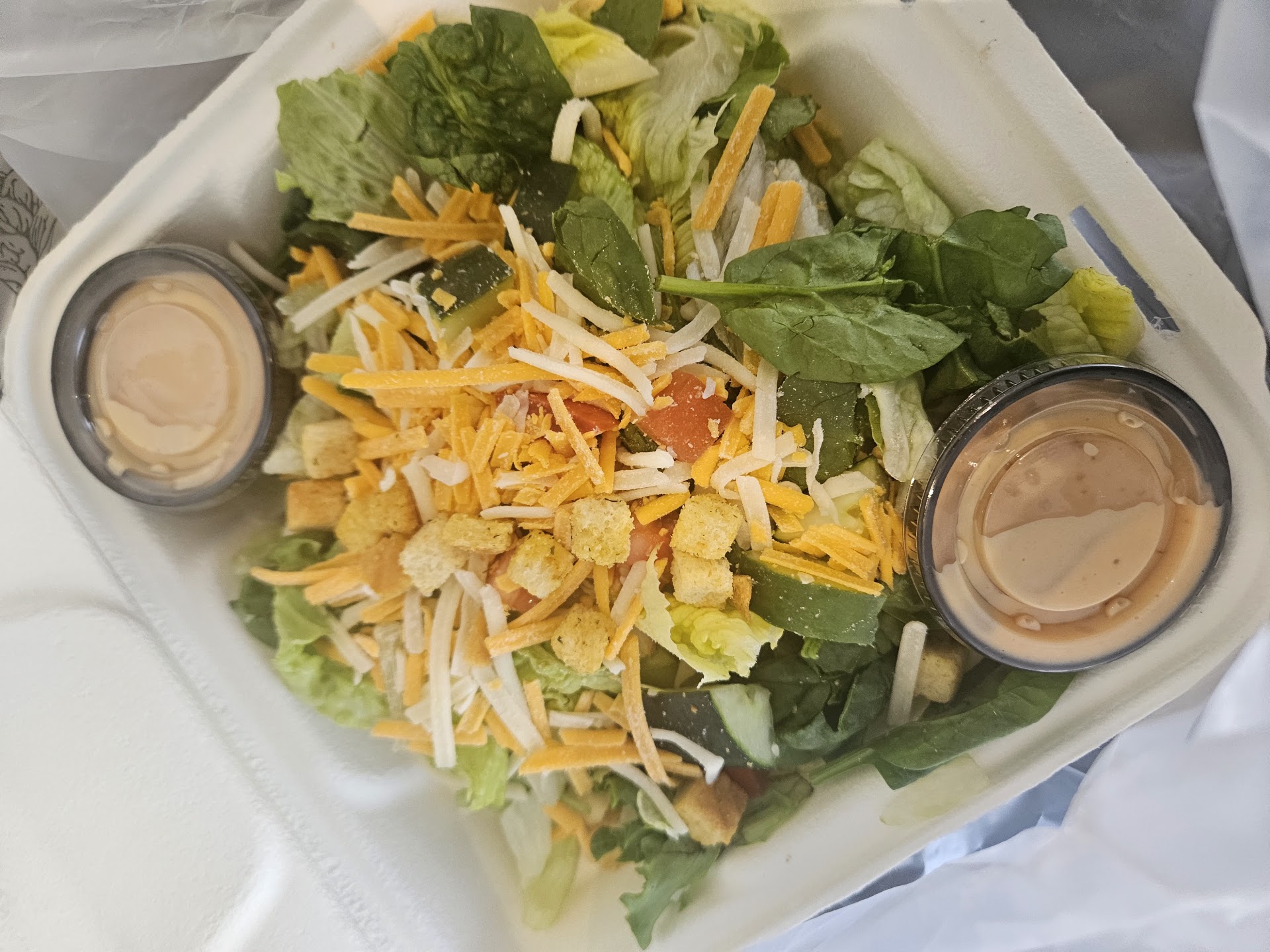 I got home and the salad dressing wasn't sealed, it had spilled all over the inside of the bag. So now I have a pointless salad anyway, just to make things worse.