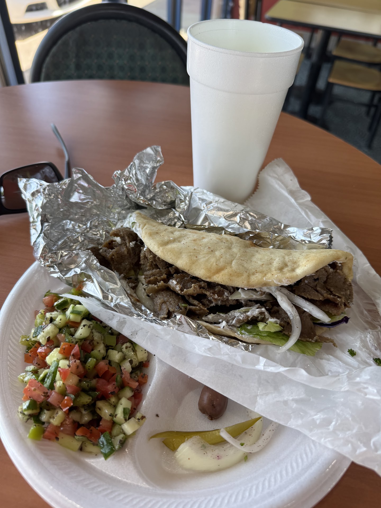 Read moreWe ordered the falafel and the beef wraps. I am not a fan of the tzatziki sauce even though it is traditionally, I would have preferred a garlic paste. The lettuce they used was low quality, so I started to pick it off. I’d get tabouli instead next time. The beef was tender and taste, my dad raved about it. The falafel was soft and packed with flavor. I would suggest that they go to an all natural fry to stay with the traditional them. The frozen ones cheapen the experience. The sever was funny and was invested in our experience to make sure it was awesome. I will add this to my list of places when I go to Shreveport. I did give them a lower rating on atmosphere because the place could use...